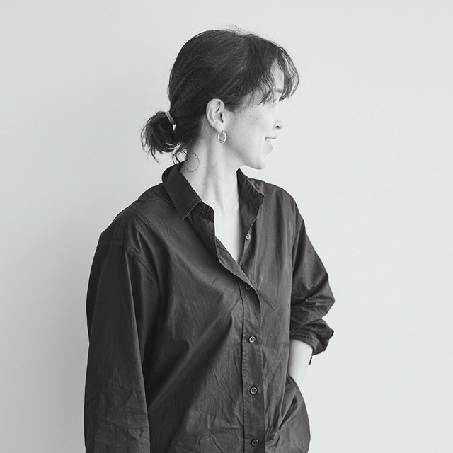 白×黒、ゴールドの配色が大人のカジュアル感を。レイヤードしやすいたっぷりしたシルエットは、ニットでも体型カバー。クラシカルなブラウスの他、ボリュームスカートに裾をアウトしてワンピース風に着てみるのも。