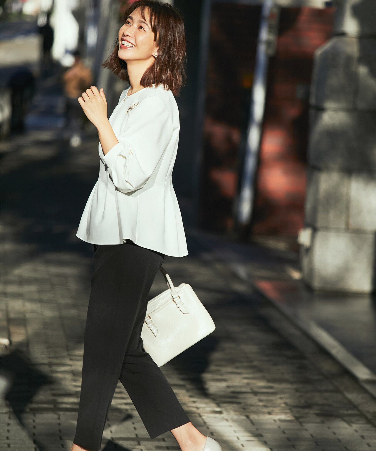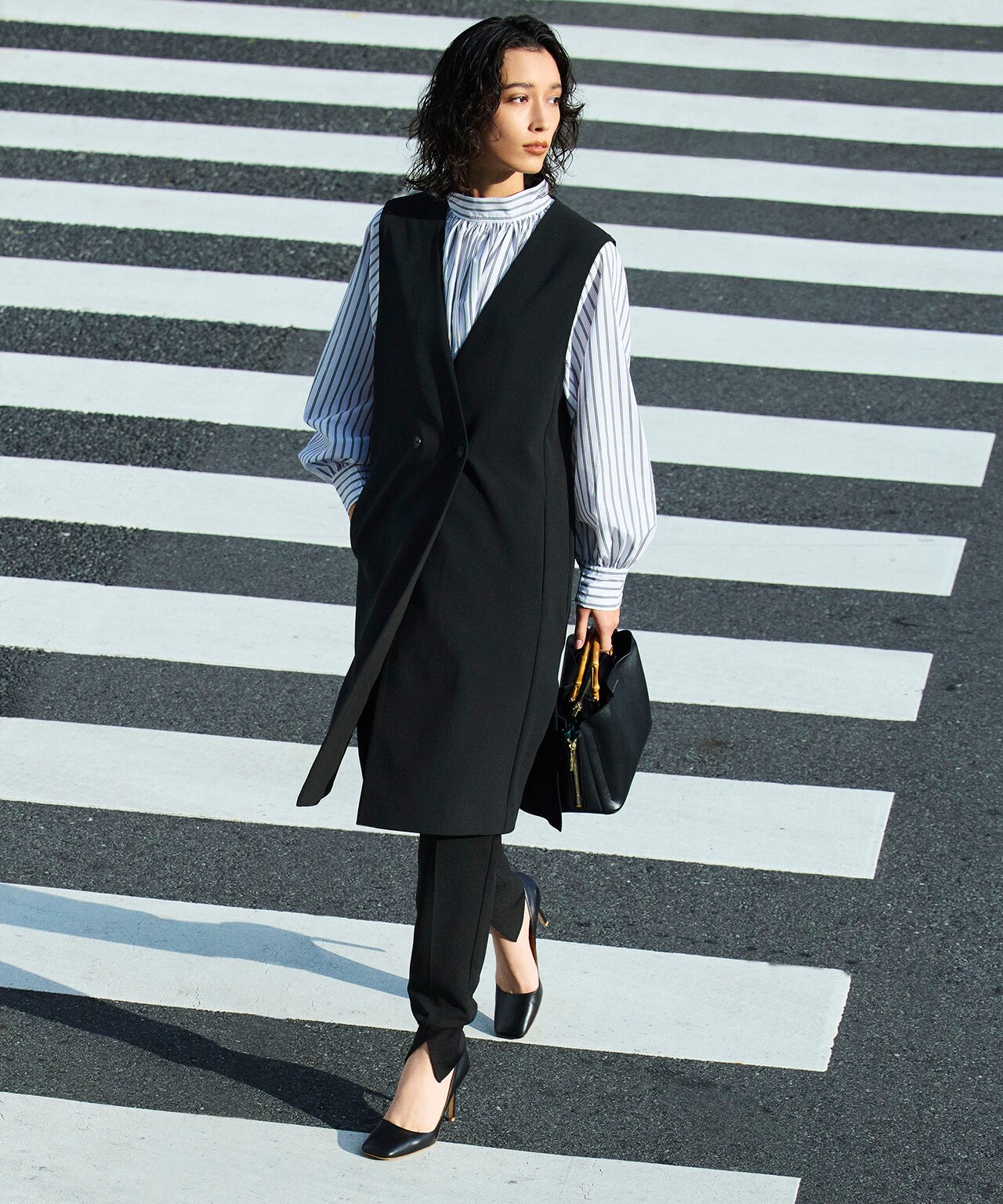 初めてのハレの日が保育園の入園式、というママも多いはず。幼稚園や小学校と違って持ち上がりのクラスもあるため、簡易的なお式になることが多いのが特徴。初めましてのハレの日に悪目立ちしたくないというのも本音。華やかな気持ちになりたいと思いつつも、気合いの入りすぎはちょっと…。そんなママにはジャケット未満のジレやデザインシャツがおすすめ。