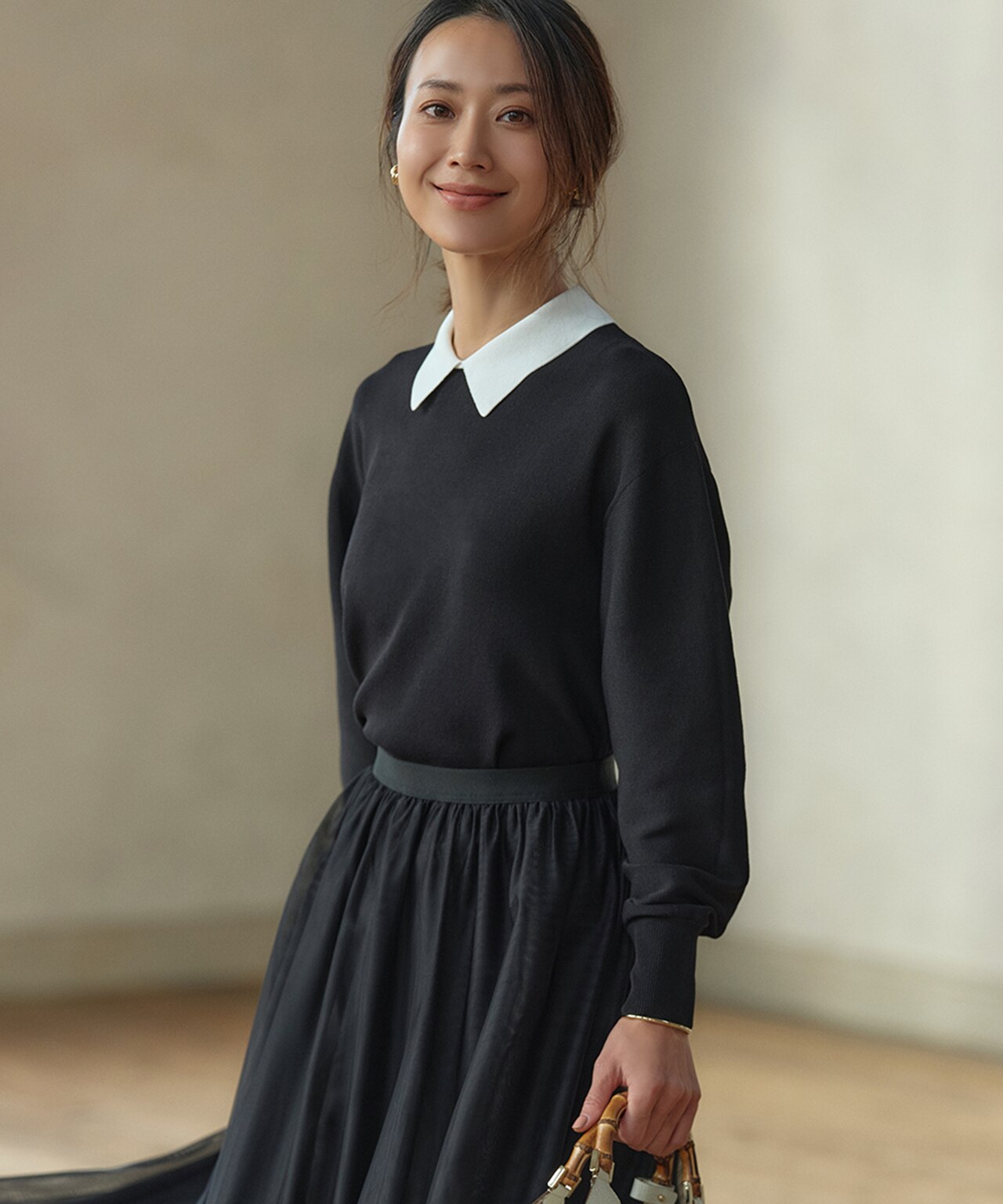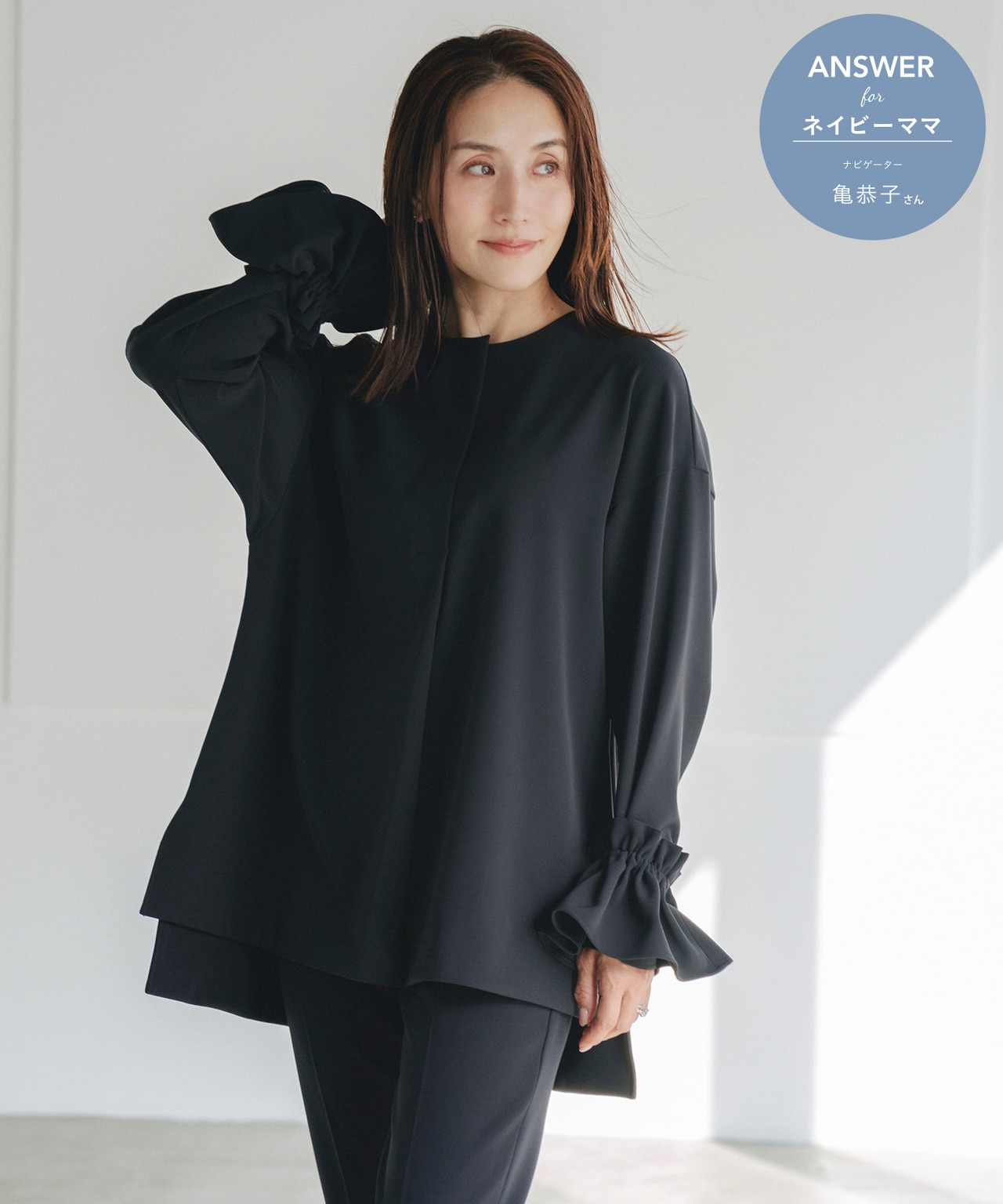 「まだまだ小さい下の子を連れてのセレモニー…」「子供サイズの小さな椅子に座るのに…」「小さな我が子のハレの日をたくさん写真に収めたい…」などなど。立ったりしゃがんだり座ったり、“動きやすい”が最重要な理由は人それぞれ!! 着なれないジャケットでシワや着崩れを気にして過ごすより、伸縮自在なニットを選んで思う存分ハレの日を楽しみましょう。