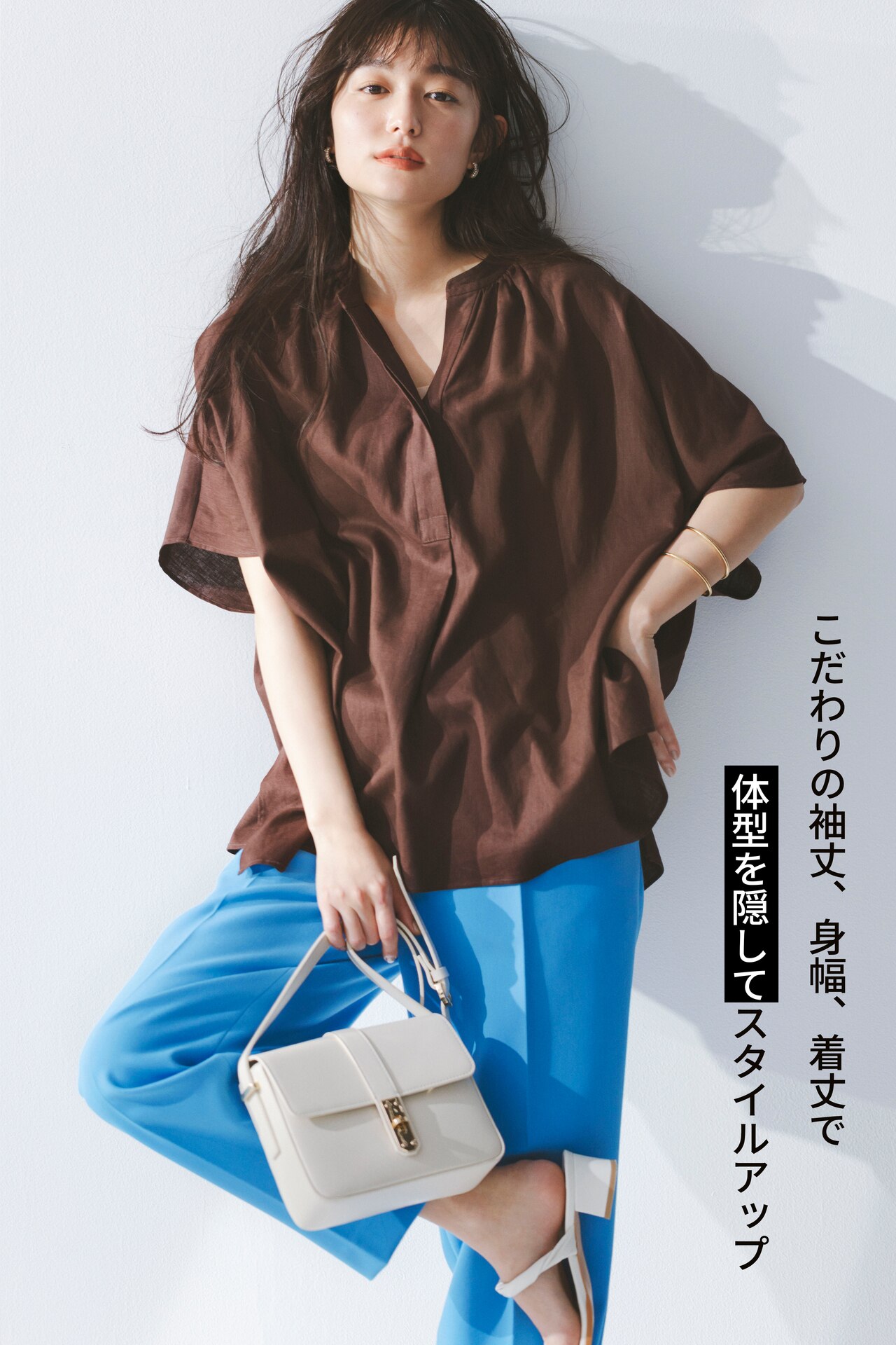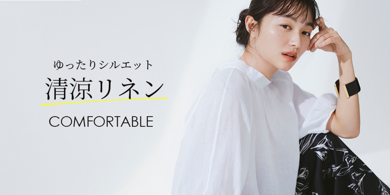 「リネン混パフ袖ブラウス」