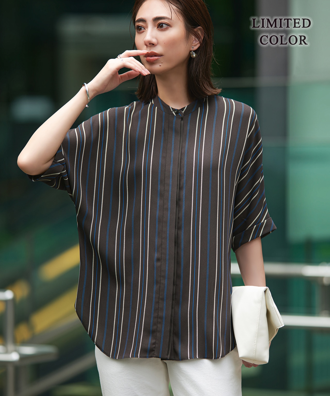 5分袖バンドカラーブラウス