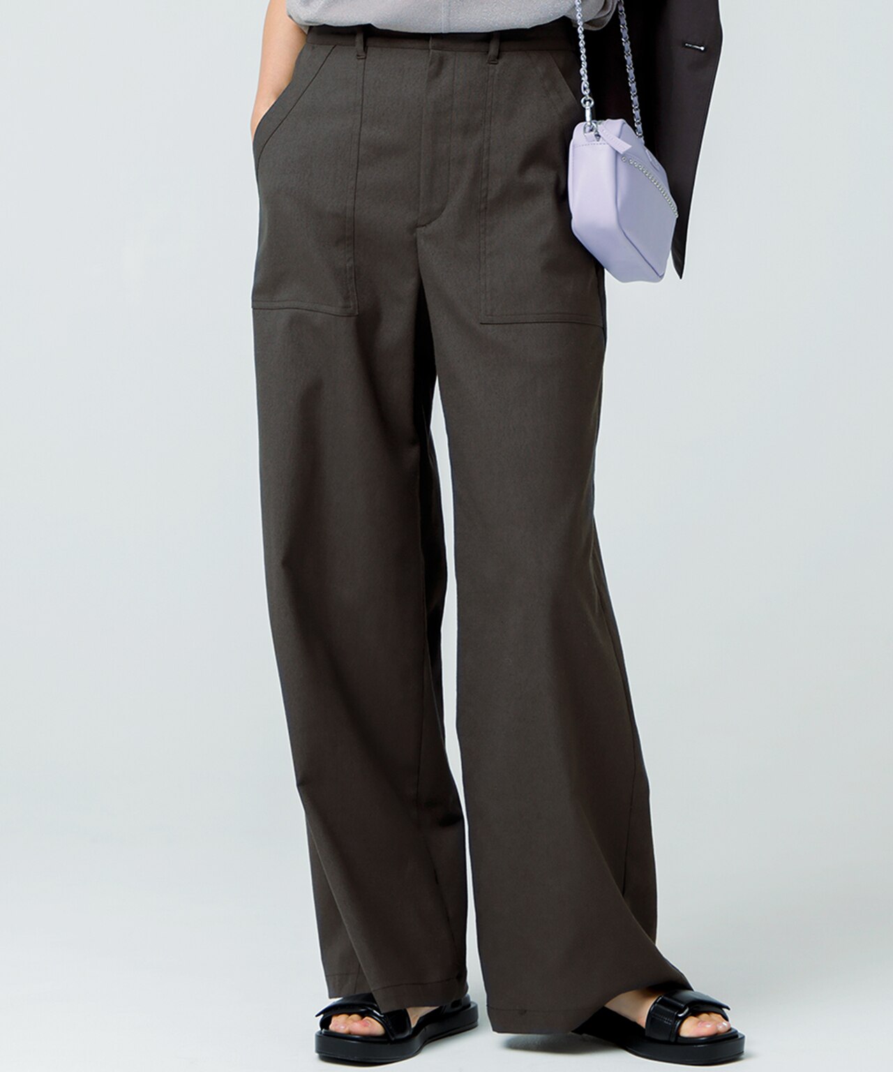 昨シーズンにグレー系を購入して、ストンとしたシルエットも気に入り、よく使いました。ブラウン系なので合わせやすく、この春夏に活躍しそうです。 ワイドパンツだけど柔らかい生地なので重くなりすぎず、とても気に入ってます。