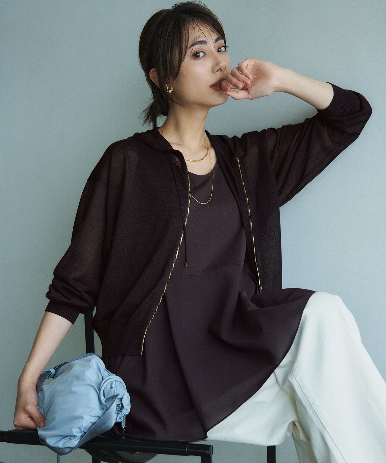去年買い逃したシャイニーシアーカーデガンだったので今年は早めにgetしました。ドルマンスリーブですが、着てみるとスッキリ見えます。程よいゆとりがシアー感と絶妙にマッチしていて、なんだかんだ着ているだけでお洒落に見えそう。全色欲しいくらいです。