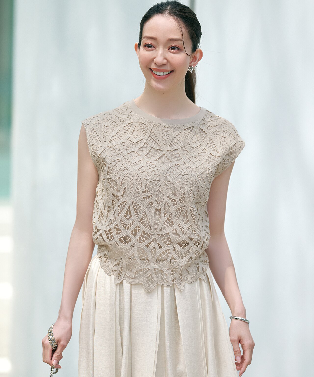ネットで見て思わず購入してしまいましたが、レースがしっかりとしていて、高級感があります。肩部分も肩幅まで生地があるのでタンクトップみたいではなく、上品に着られるので、これからの夏、これ一枚でも大丈夫そうです。