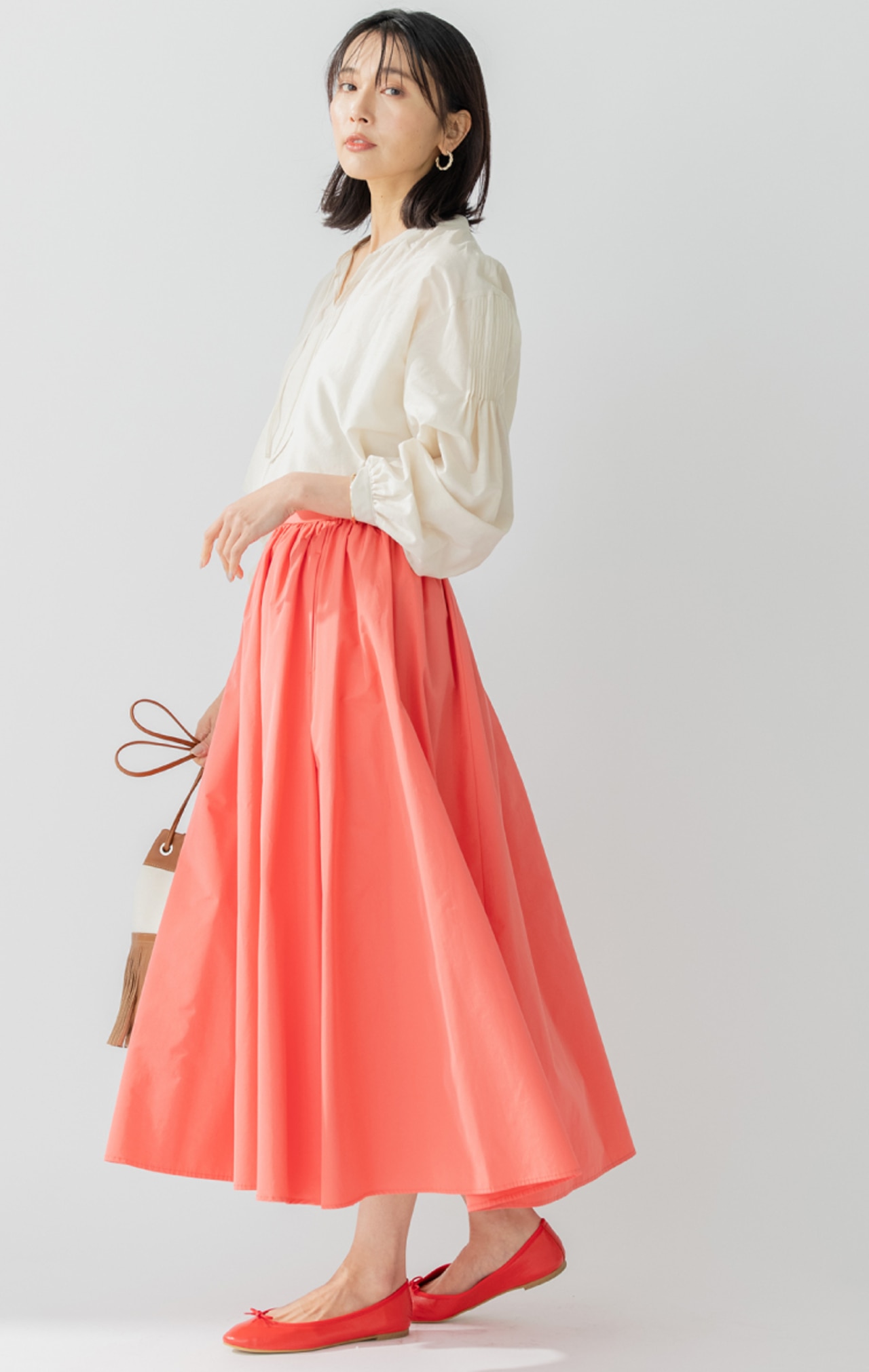 - 【洗える】マットナイロンタフタ タック スカート/23区