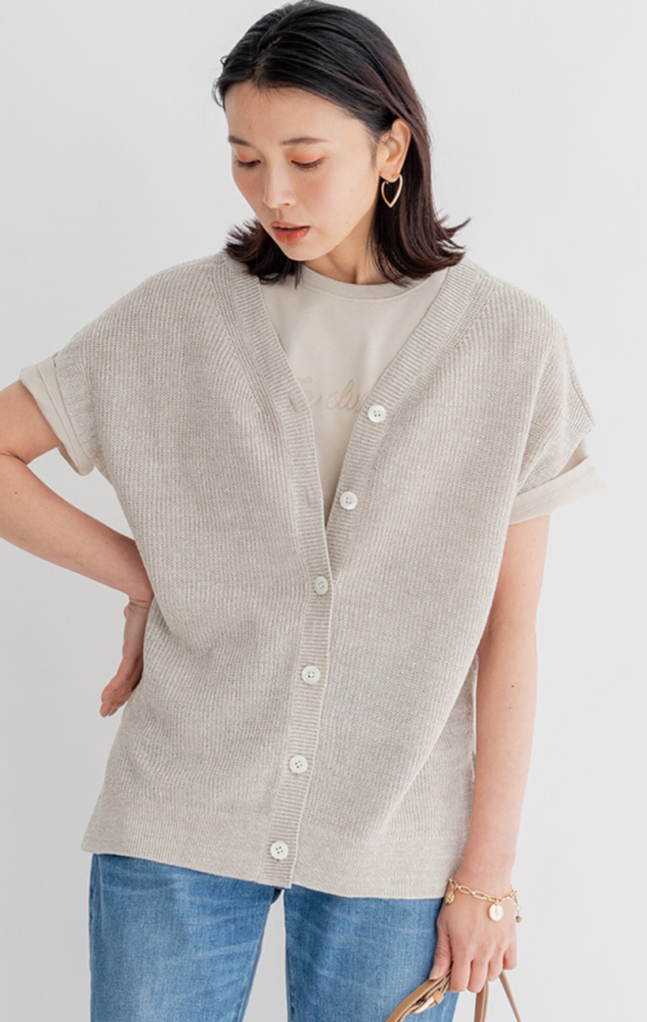 - 【洗える】テンセルストレッチ Vネック カーディガン/23区
