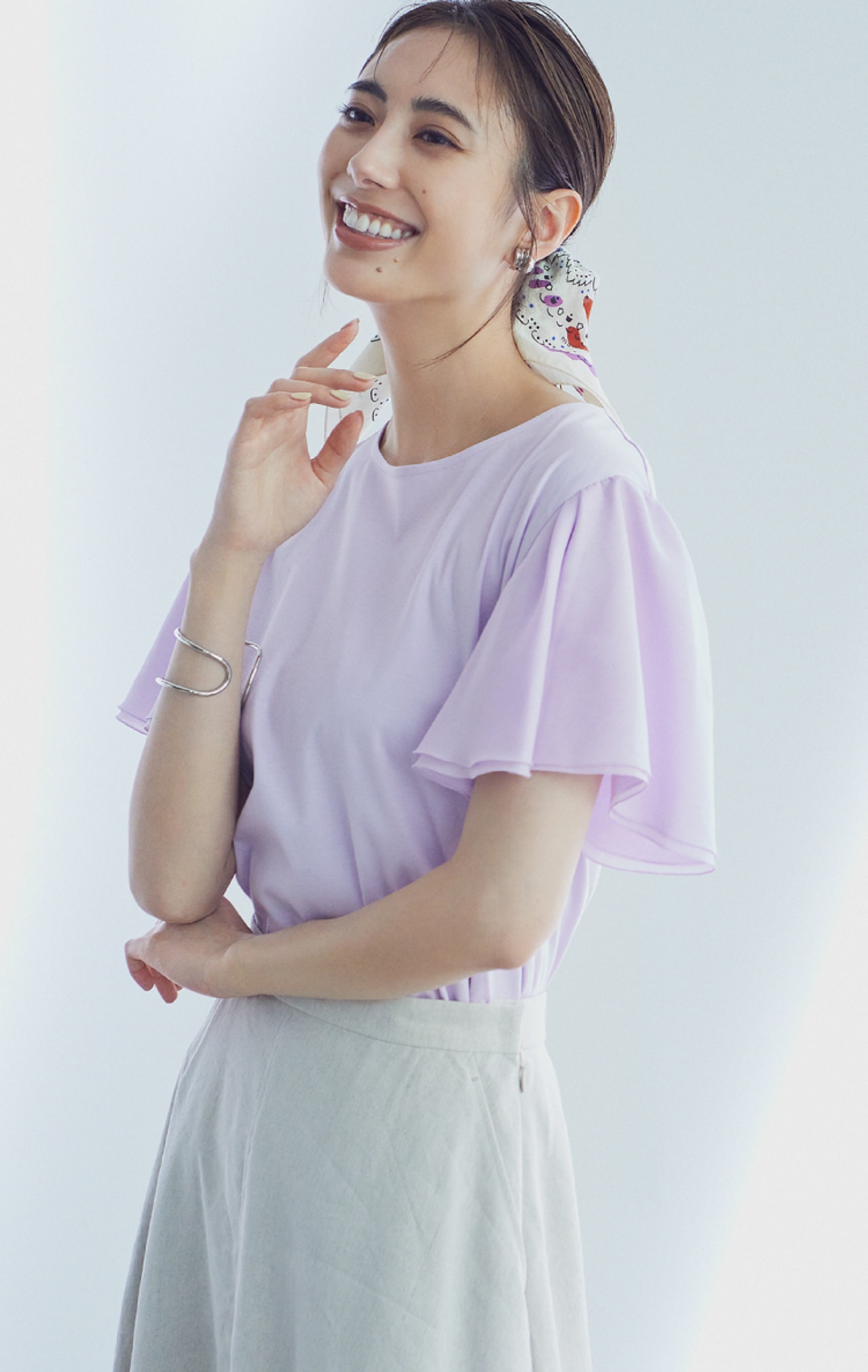 - 【洗える】コットンツイルジャージー フレアスリーブ カットソー/23区