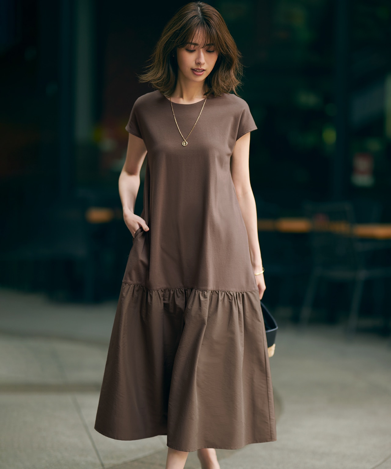 - 【接触冷感・洗える】美シルエットポンチ ワンピース/組曲