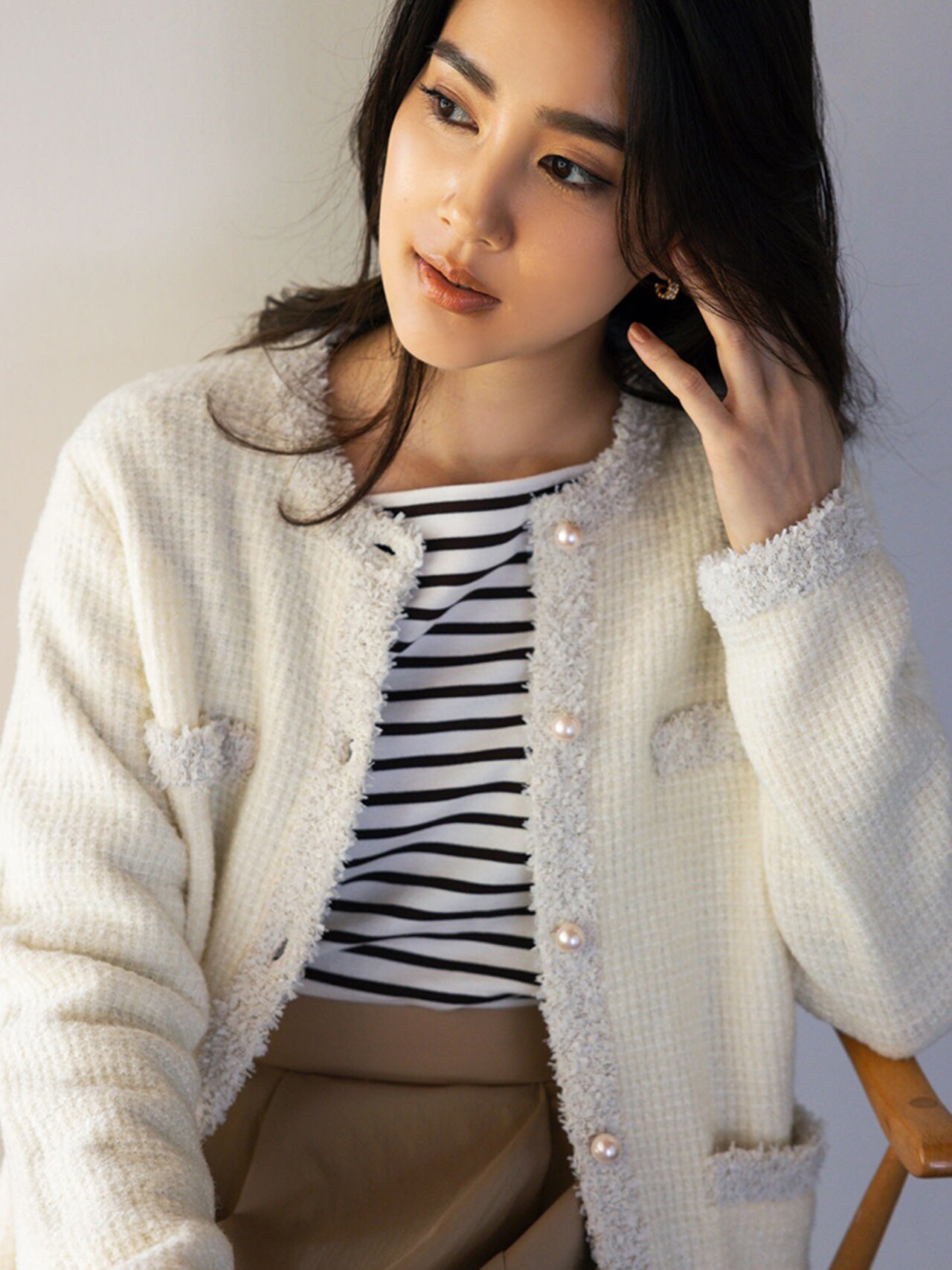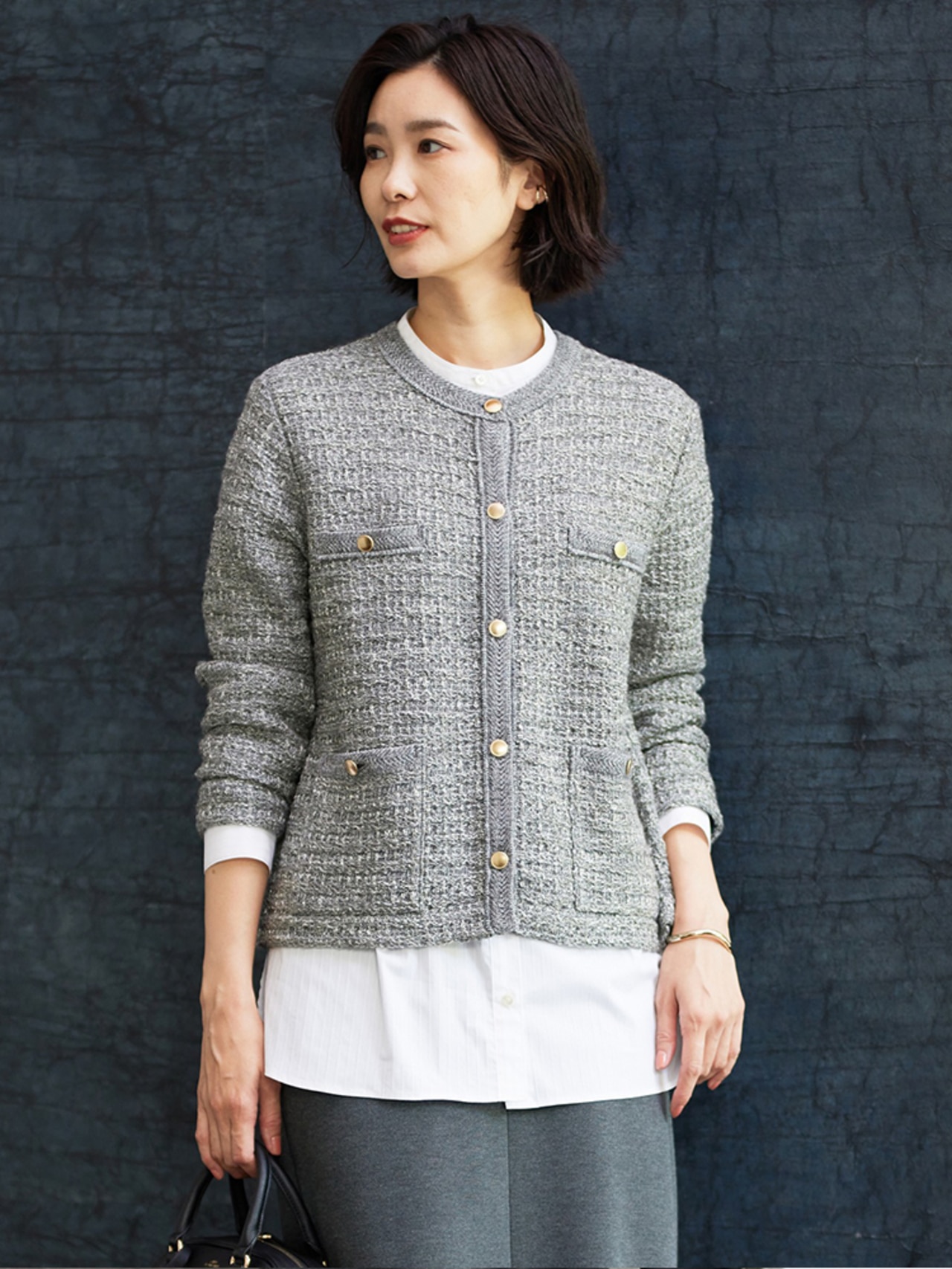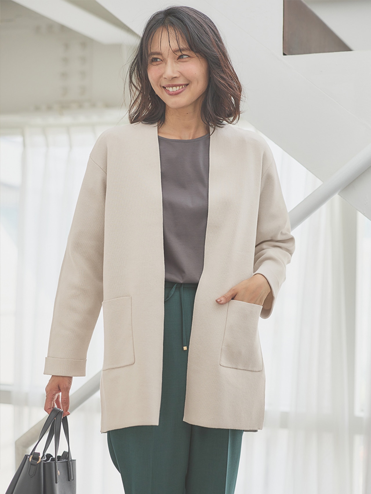 - 【洗える】シンセティックヤーンスムース ニットジャケット/ICB