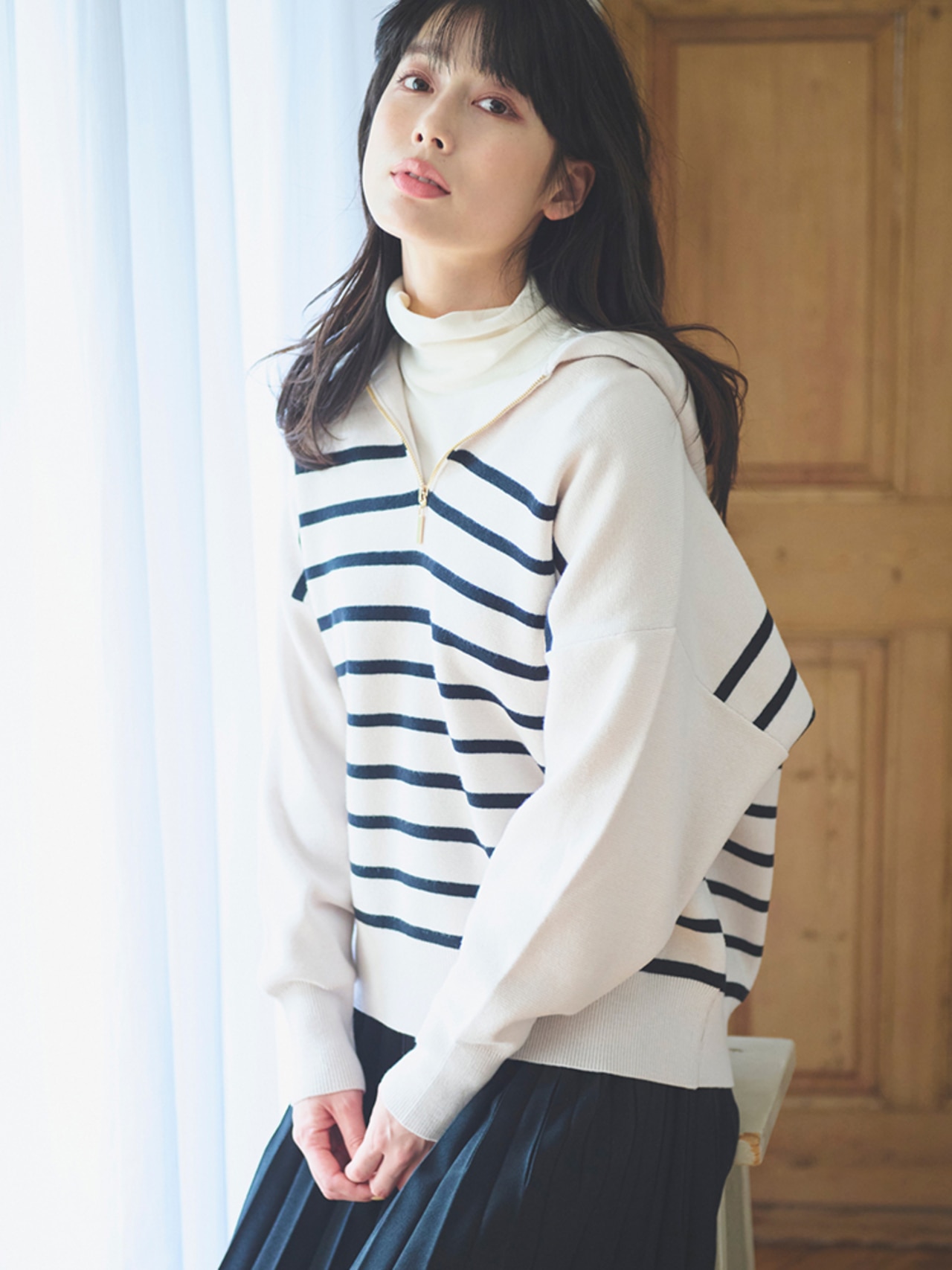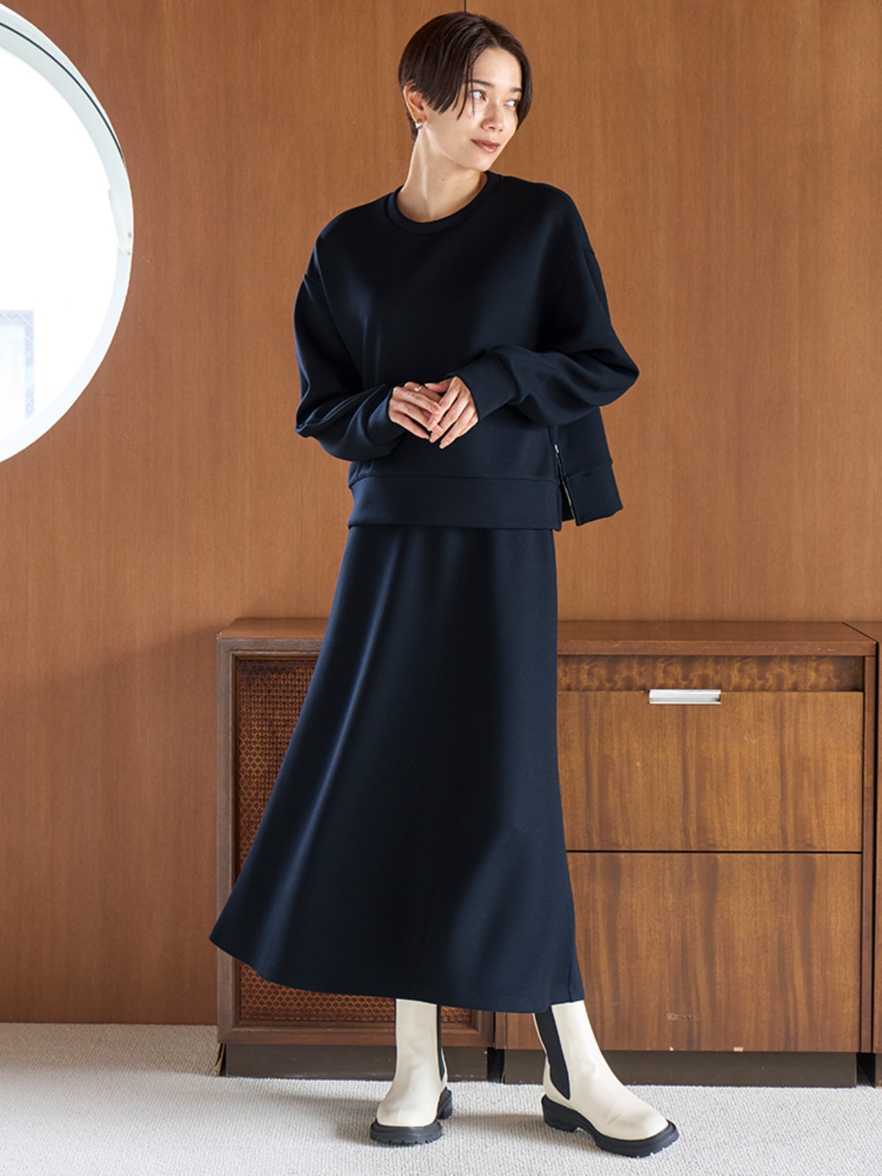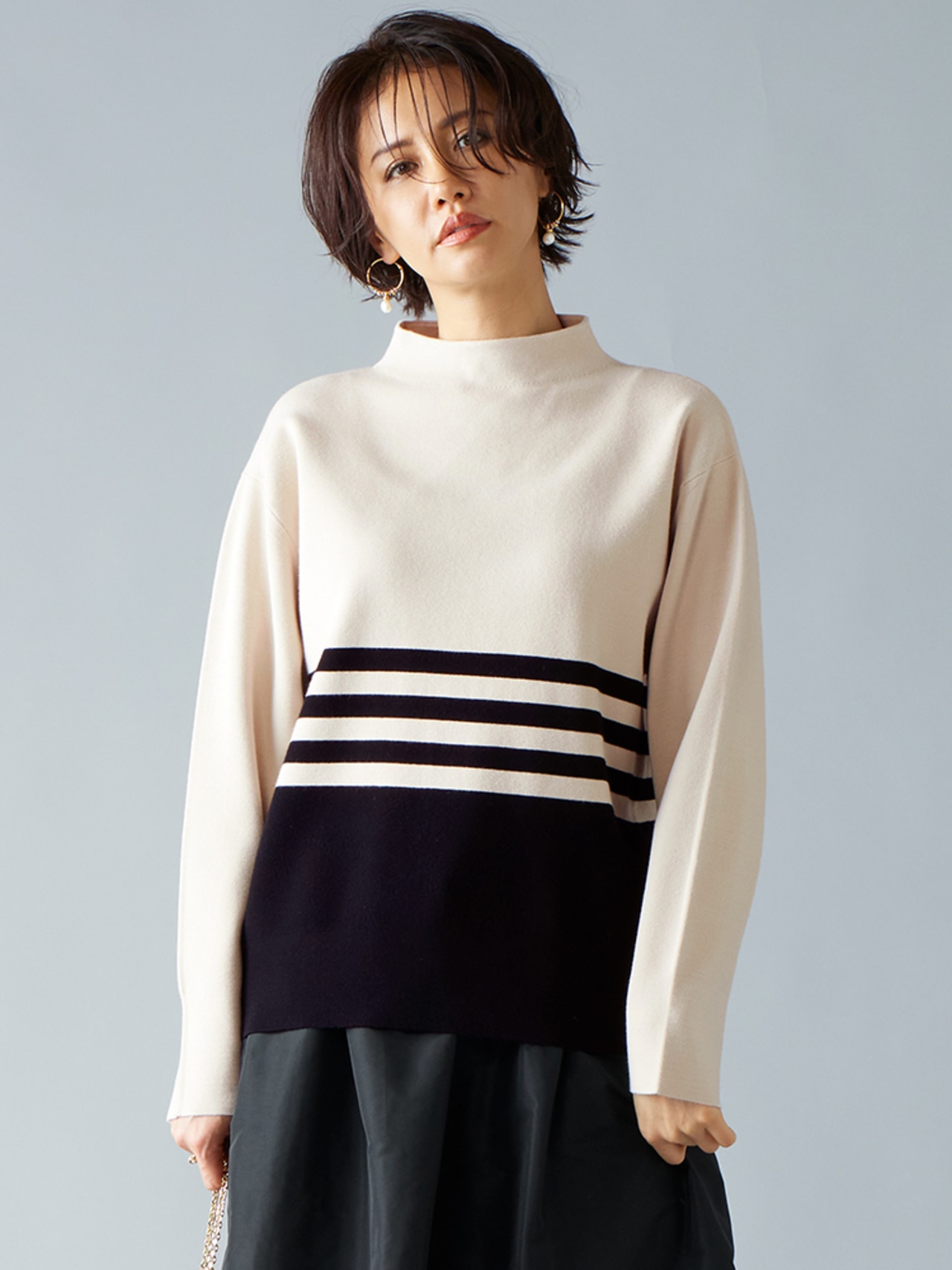 - 【WEB限定カラーあり】【セットアップ対応・洗える】レーヨンストレッチモックネック ニット/自由区