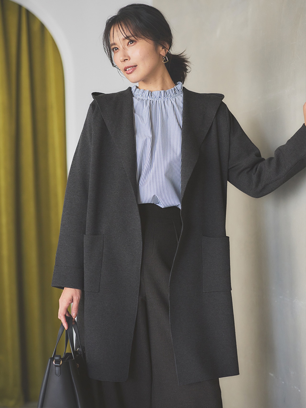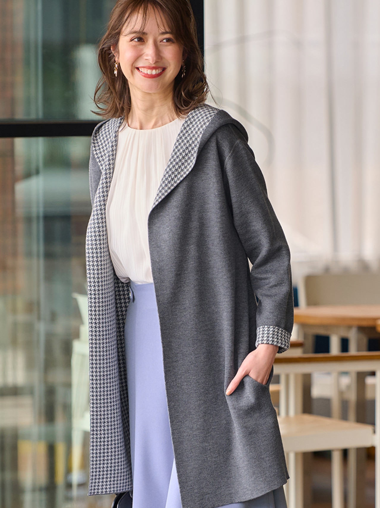 - 【洗える】シンセティックヤーンスムース ロングニットジャケット/ICB