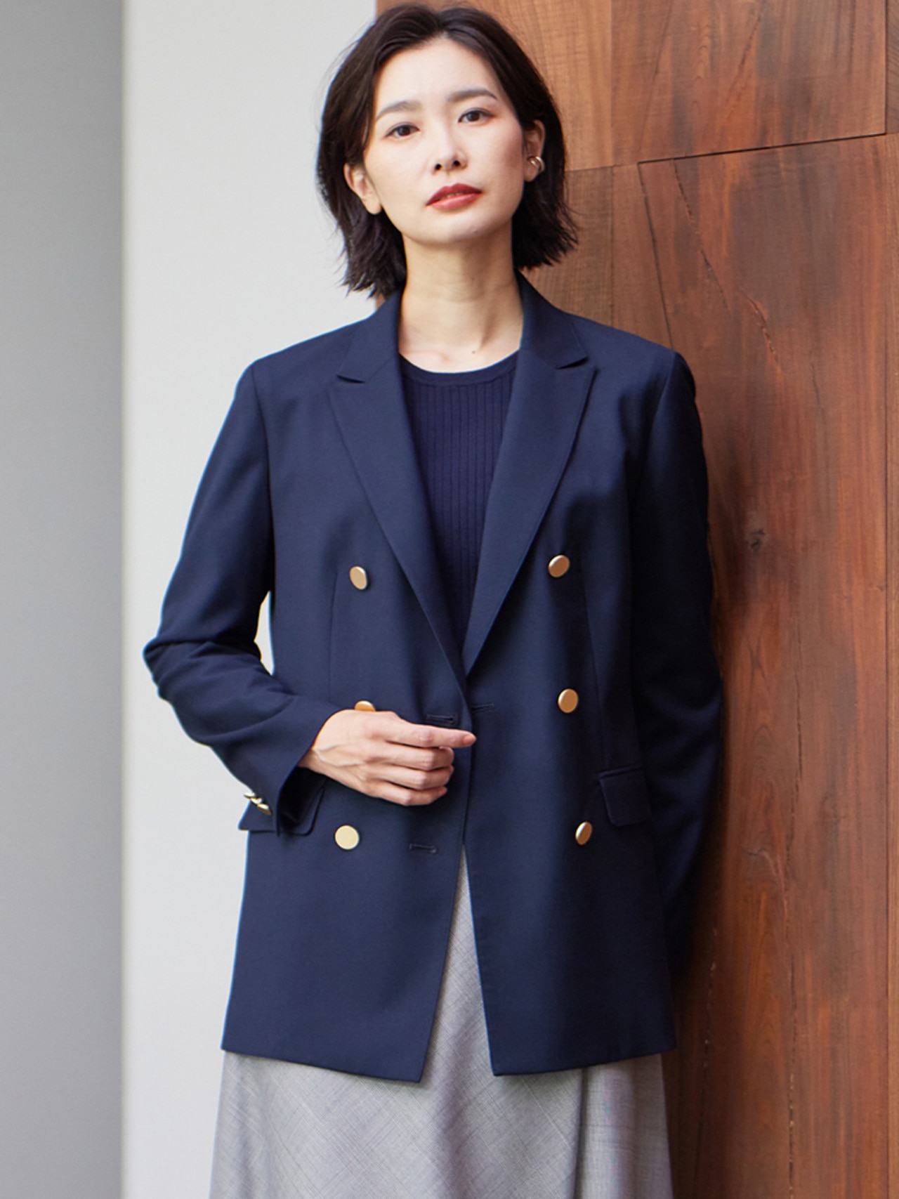 - 【洗える】ウール2WAYストレッチ ダブルブレストジャケット/ICB