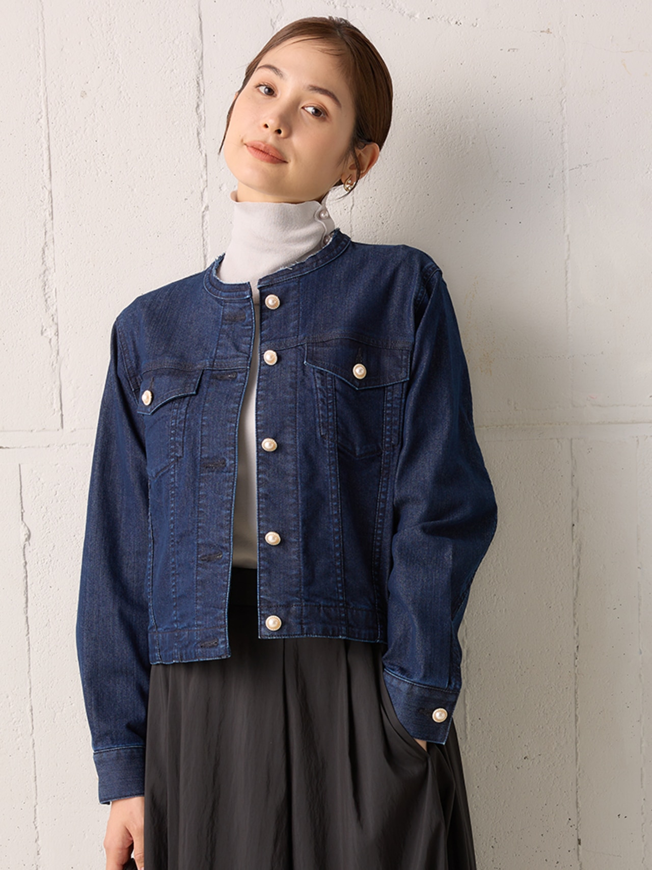 - 【UVケア・洗える】ウール2WAYストレッチ ノーカラージャケット/ICB