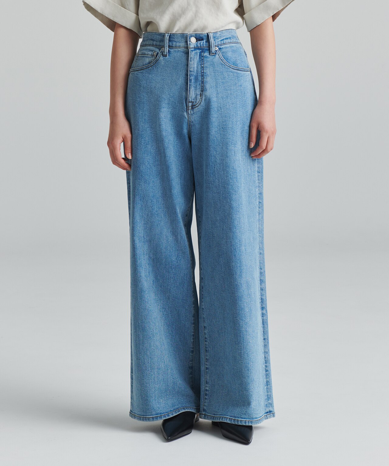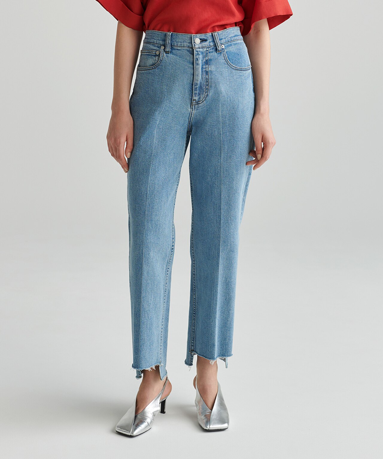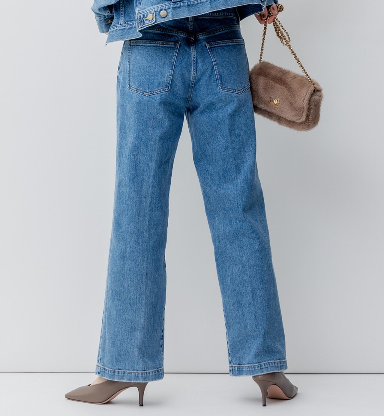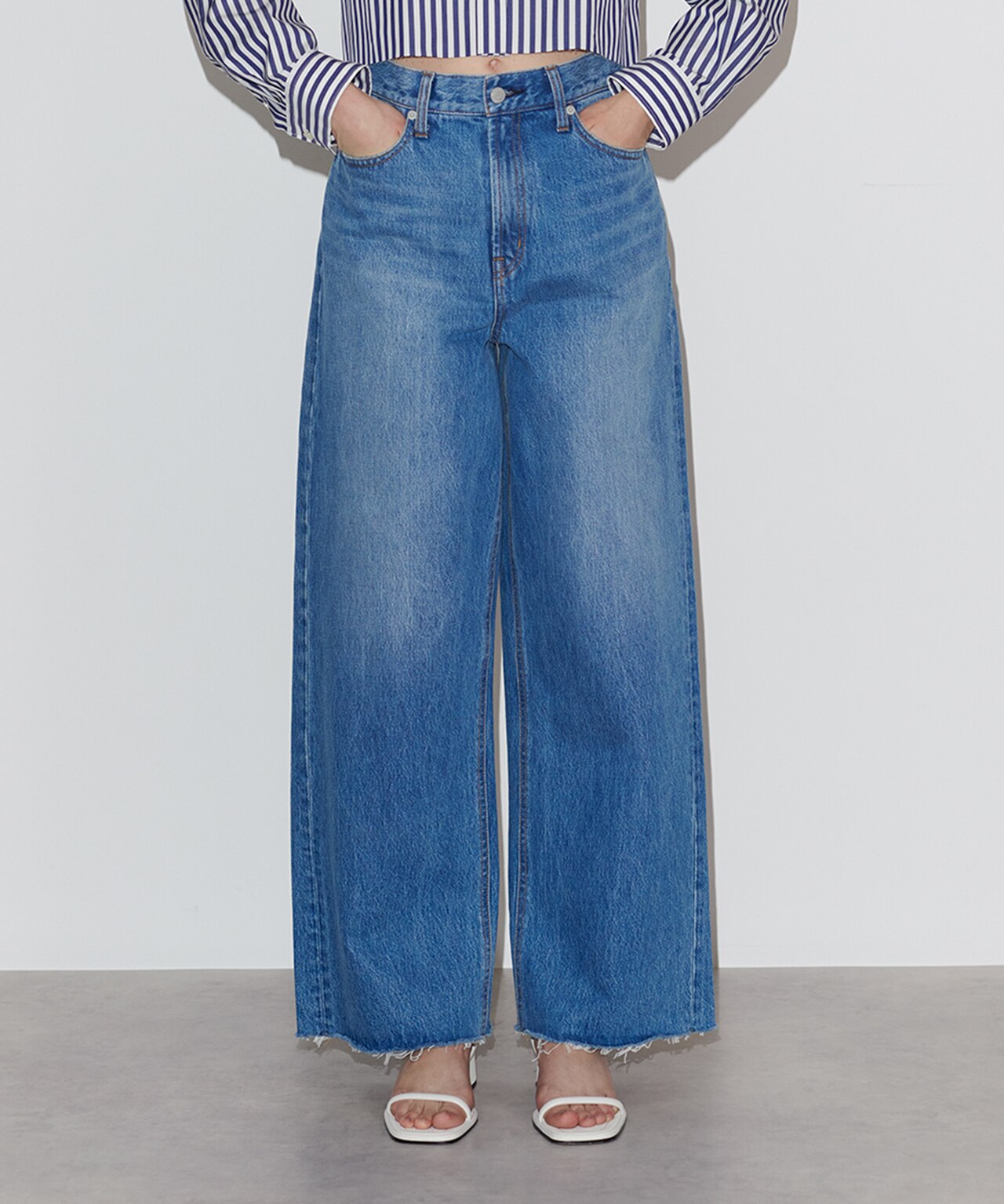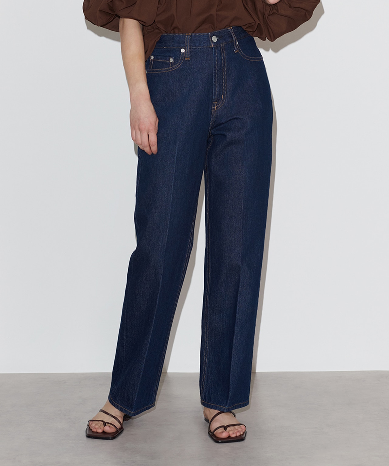 ウエスト位置が高く気になる腰回りも包み込んでくれるから、ヒップアップと脚長効果が叶う最強なシルエット。今年トレンドの短め丈のトップスには欠かせない1本になりそう。定番だからこそトレンドとのかけ合わせが無理なくできる「お守りデニム」は季節の変わり目にぜひ。