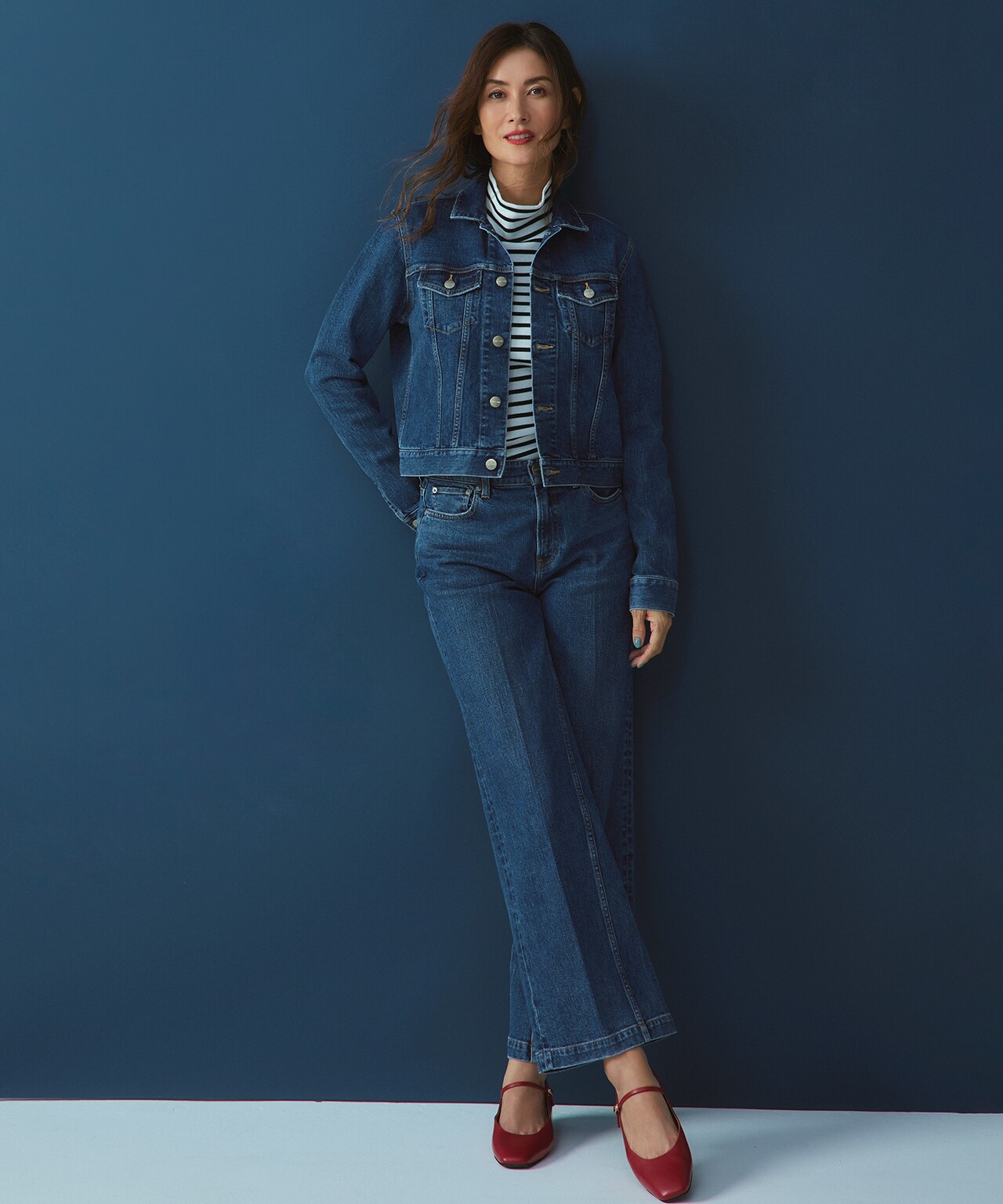 ボトムスを引き立てるトレンドのショート丈デザインのデニムジャケットは、23区×RED CARD TOKYOとのコラボレーション。見た目はもちろん、着心地にもこだわったデニム好き納得のアイコン的アイテム。