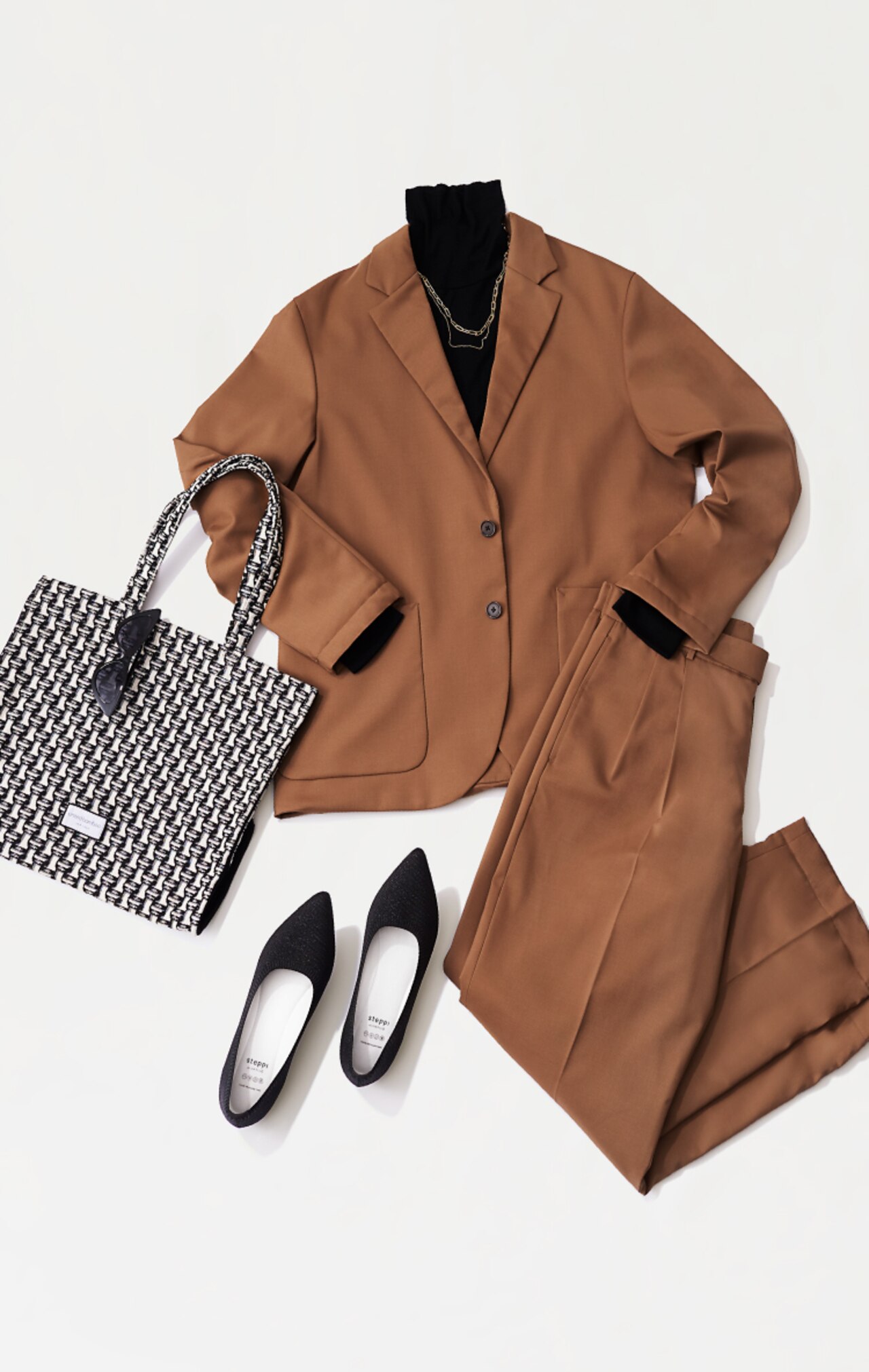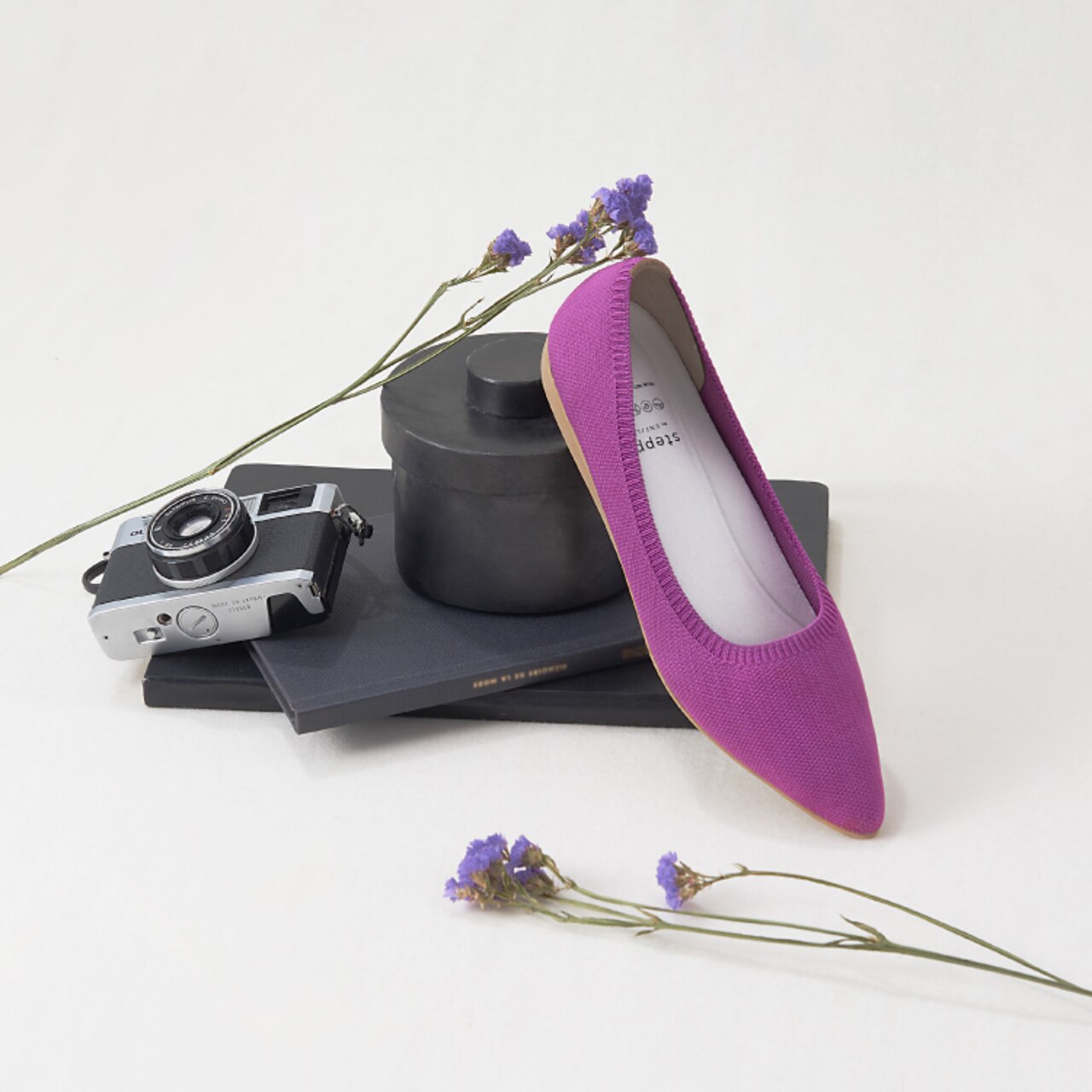大人のデニムスタイルに合わせたいパンプス。「steppi」はニットパンプスだから足が痛くなりにくく、尚且つ足もとがキレイに見えるのも嬉しいポイント。秋の装いに奥行きを出す、パープルをチョイス!