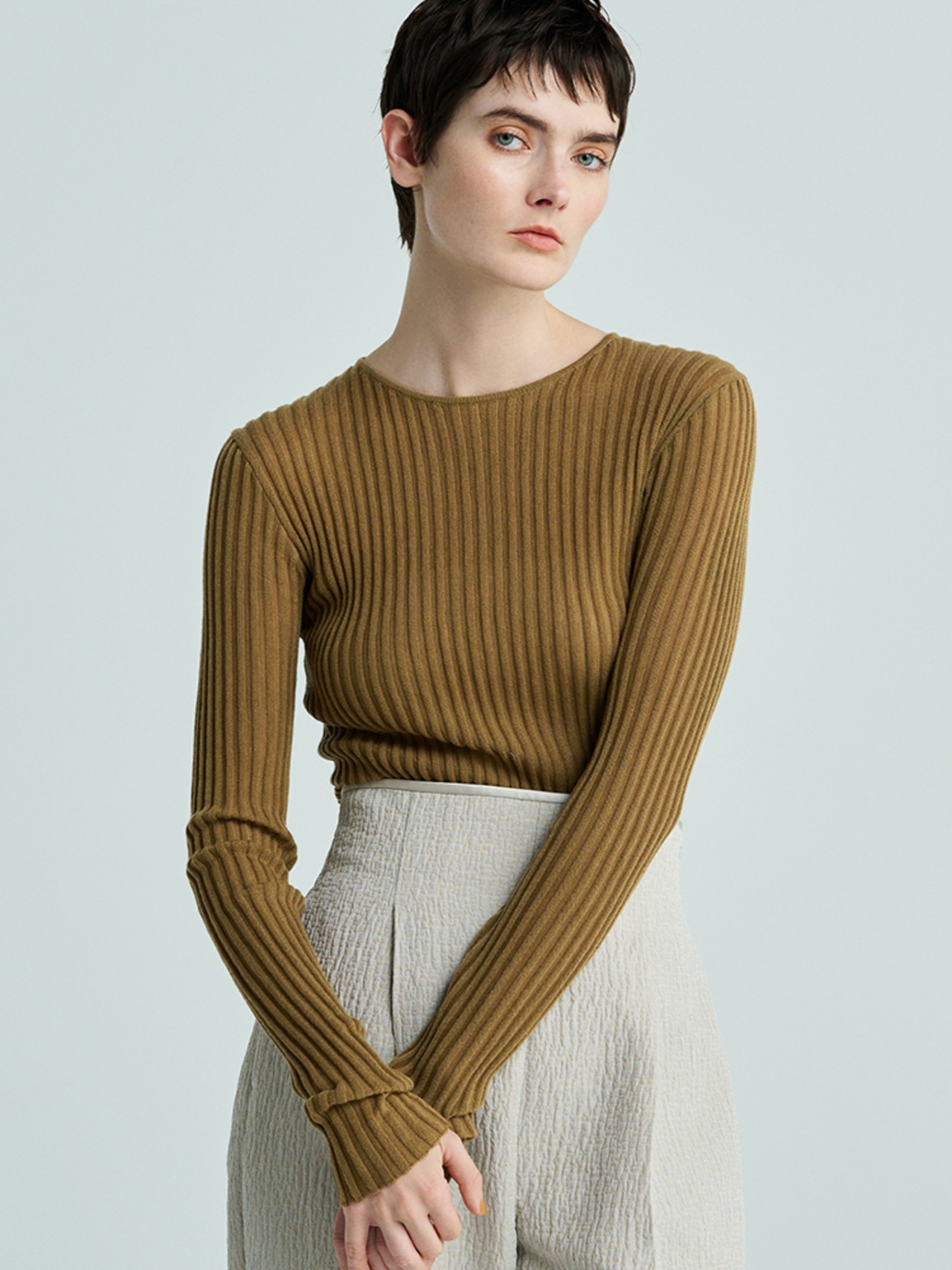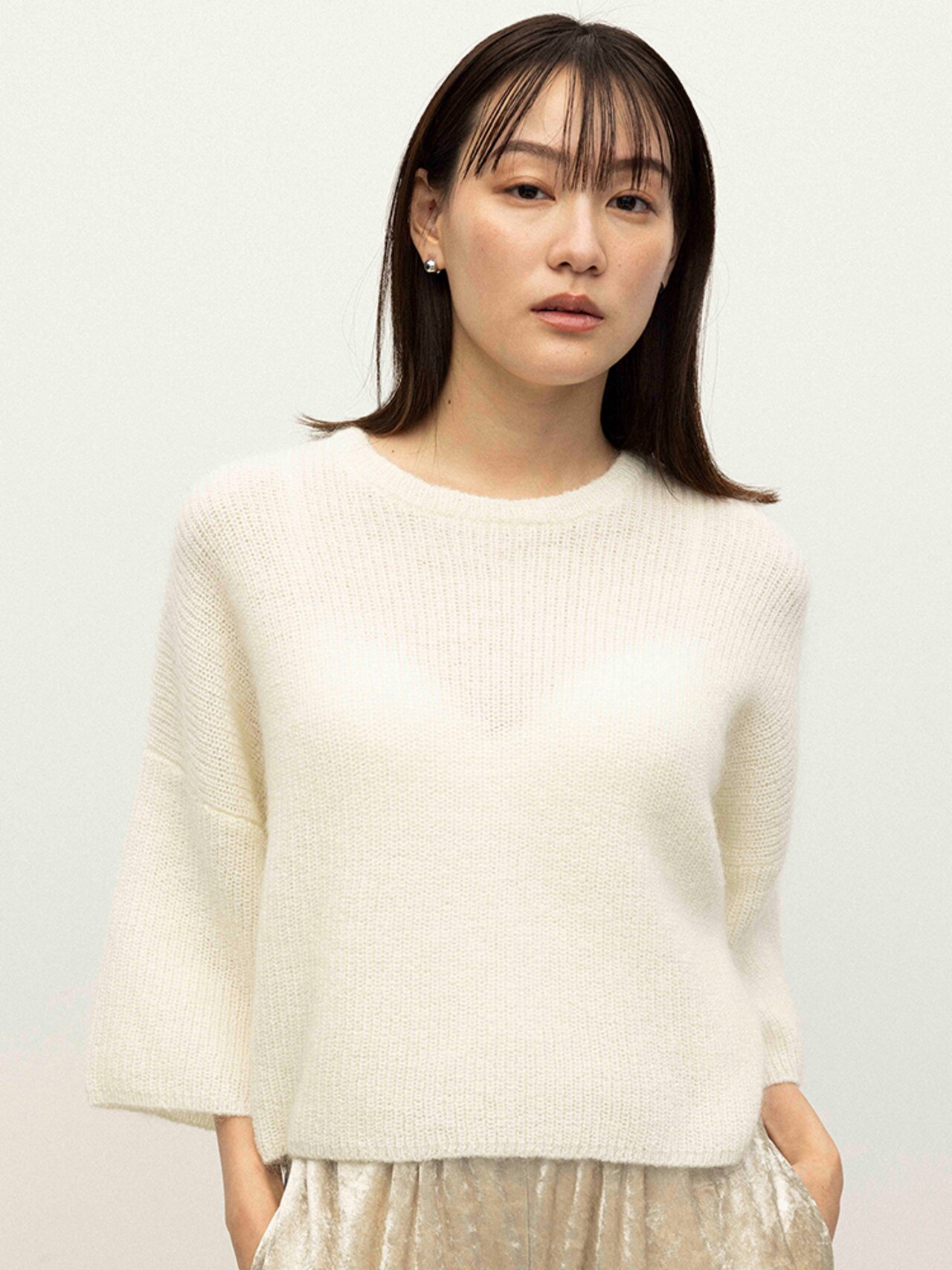 - 【滝沢眞規子さん着用】ベビーアルパカ クロップド ニット/23区