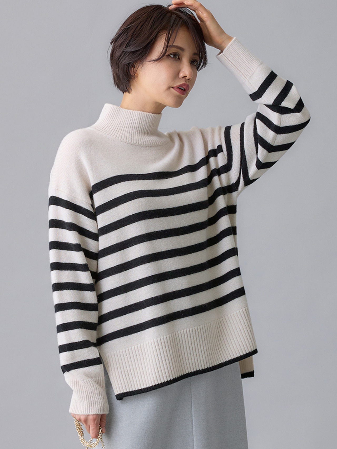 - 【洗える】ウールミドルゲージ ボーダー ニット/23区