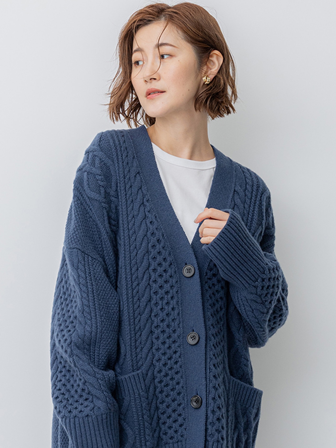 - 【洗える】WOOL BLEND AIR ケーブル ニット/J.PRESS LADIES