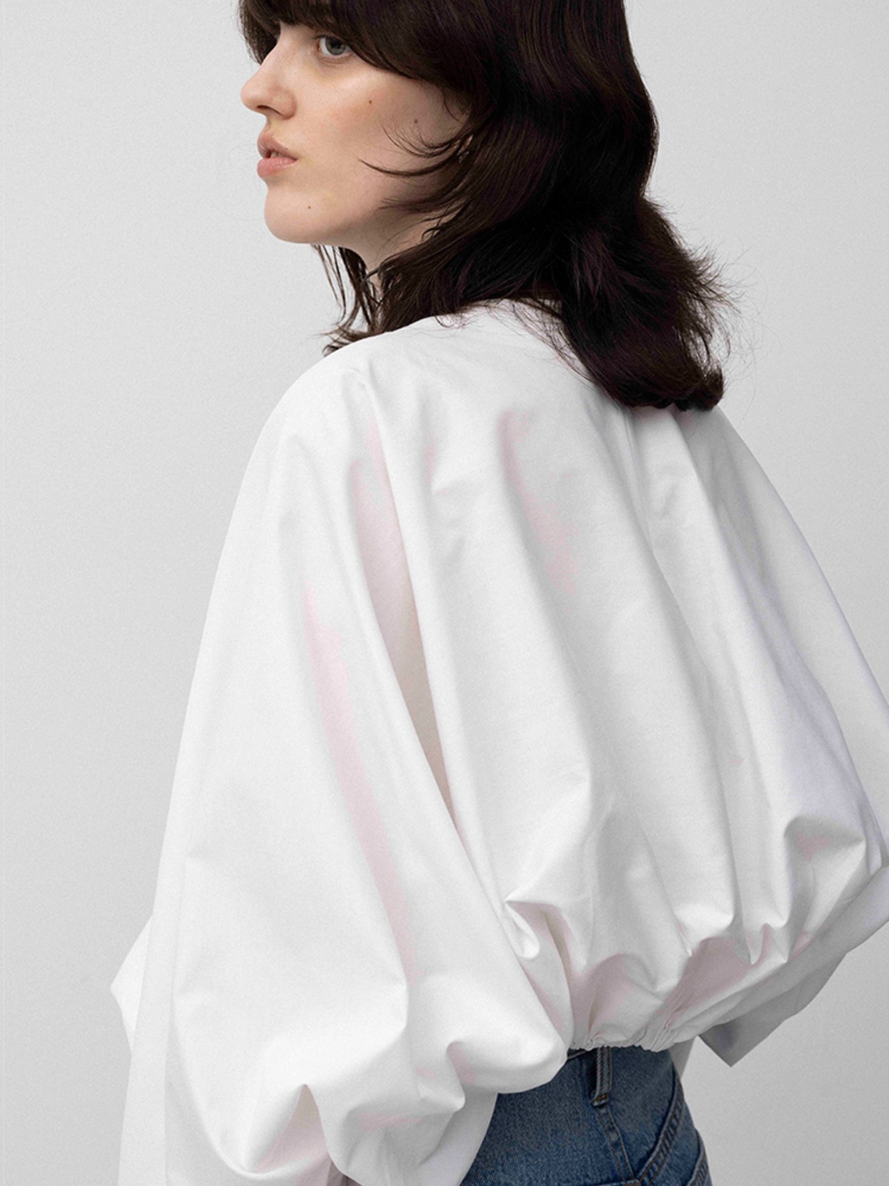 - 【洗える】ハイカウントパフスリーブ カットソー/自由区