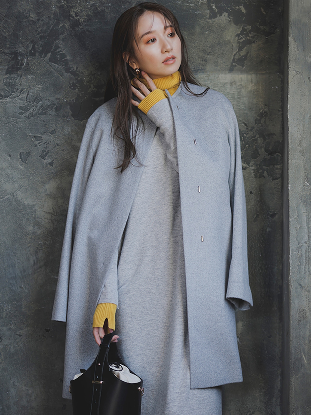 - 【WEB限定カラーあり】ブレンドビーバー ノーカラー コート/J.PRESS LADIES