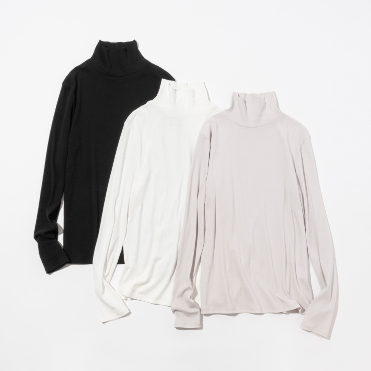タートルといえばニットだけど、この時期は綿のカットソー素材が使いやすく大人気。