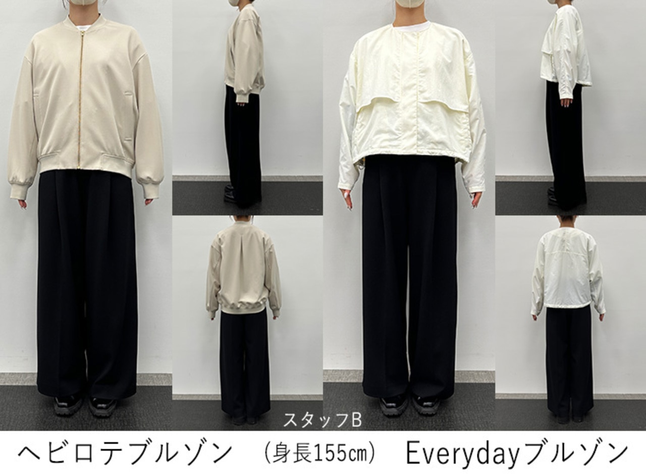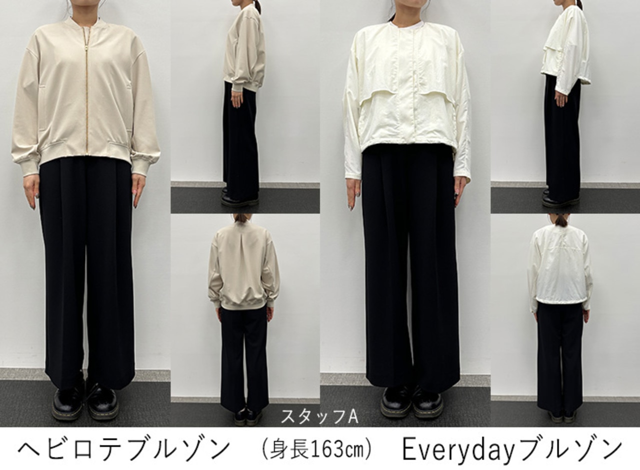 バックスタイルを比べると、ゆとりのあるヘビロテブルゾンと、コンパクトなトレンドシルエットのEverydayブルゾンという印象です。