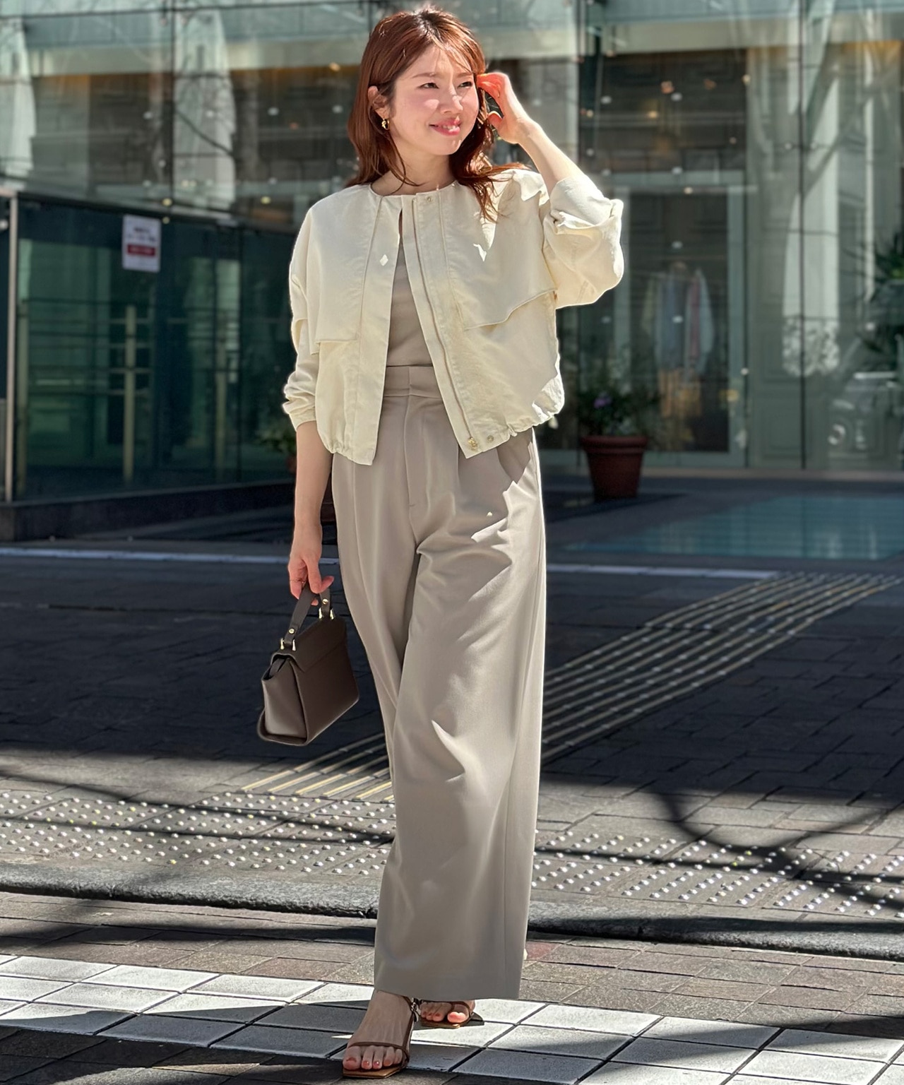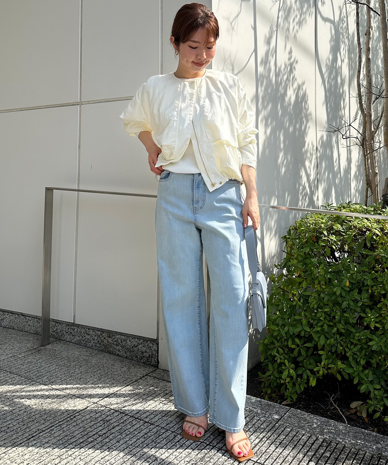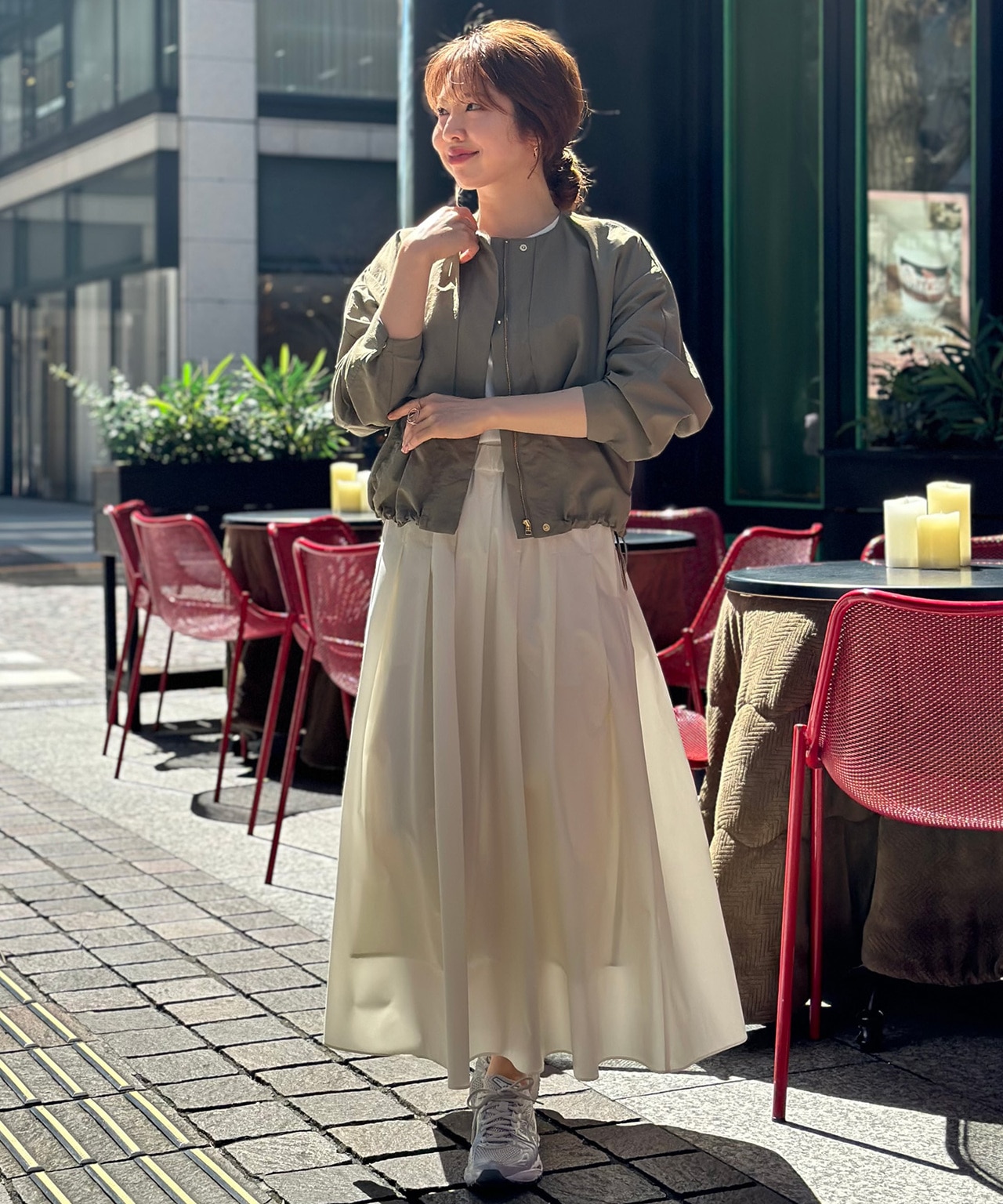 お尻まで隠れる安心丈のヘビロテブルゾンも重宝しますが、Everydayブルゾンはちょうど腰の高さまでのレングスで、自然と目線が上がり、スタイルアップ効果が!