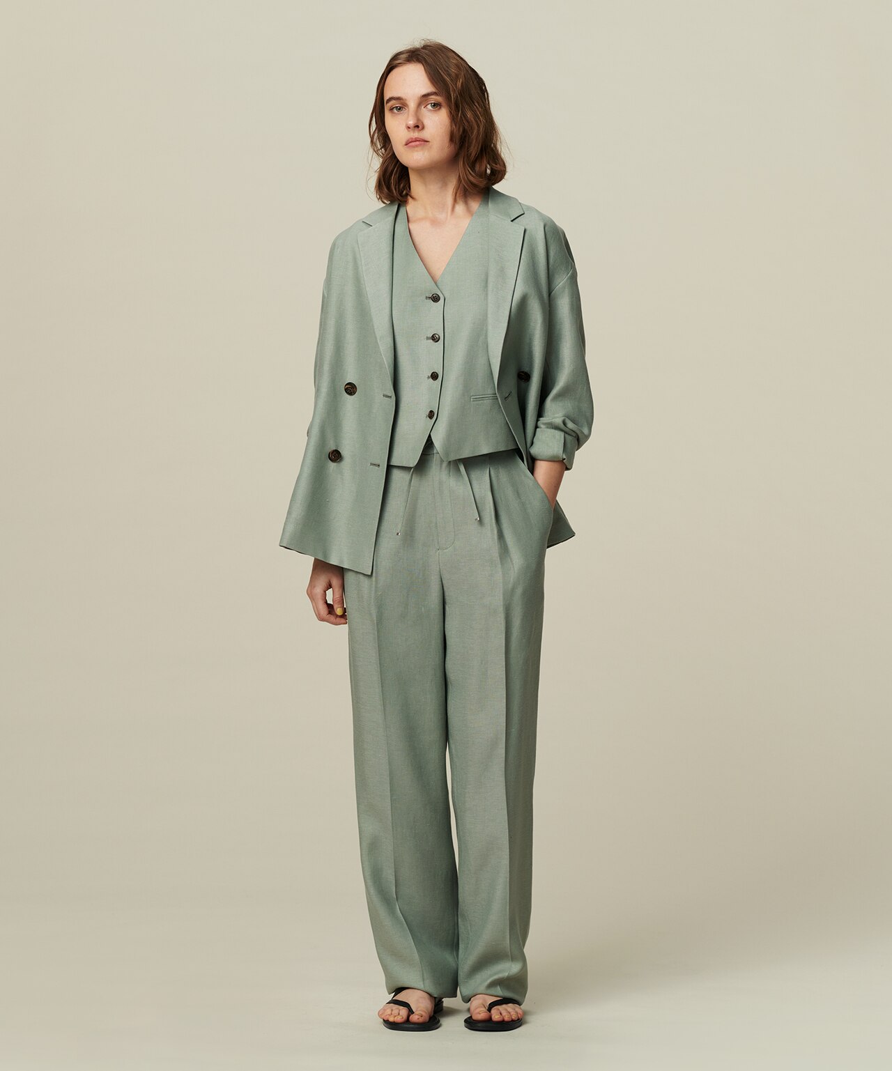 軽快なボタンレスジャケットを