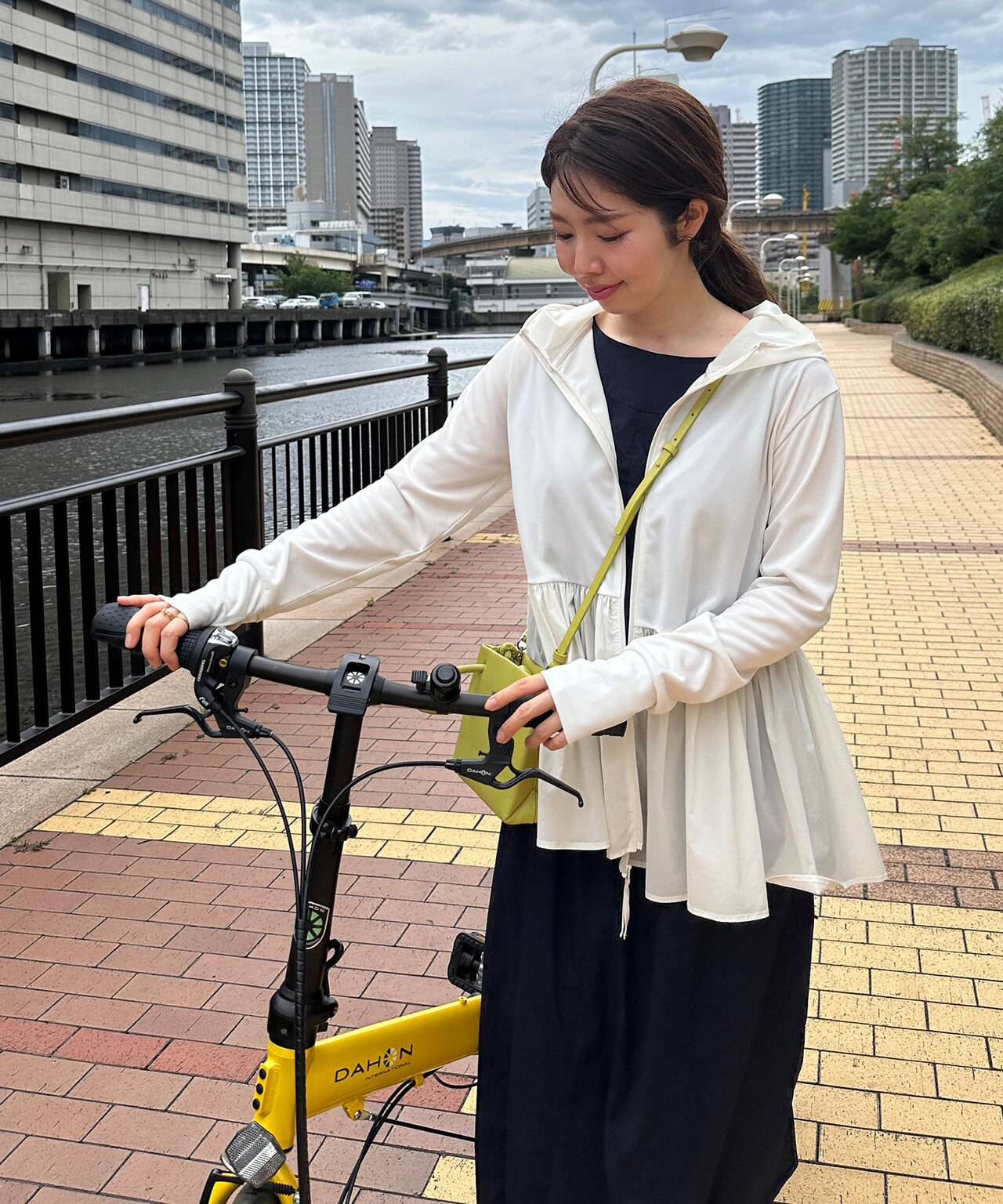 「サムホール付きだから手の甲までしっかりカバー◎フードもあるので首元も安心。毎日の送迎による自転車焼けも対策できちゃう優れものです!」