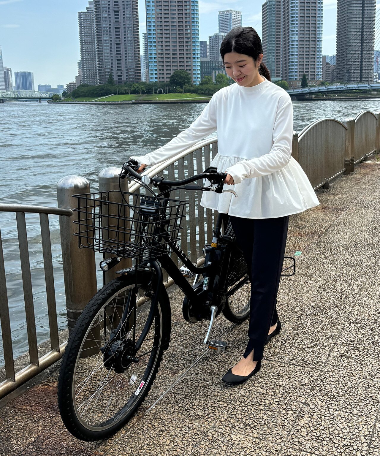 「ペプラム部分と同素材のショートパンツに合わせて、スポーティに着ても可愛い!ペプラム部分は程よくヒップをカバーしてくれるので、水際でも安心です。」