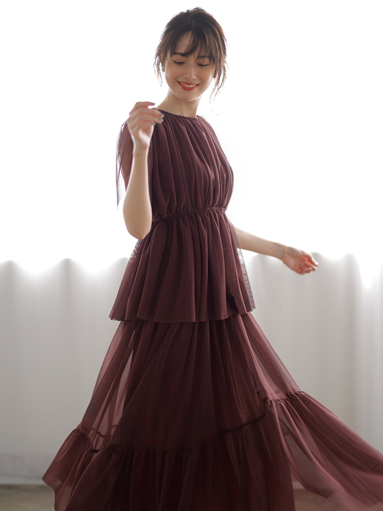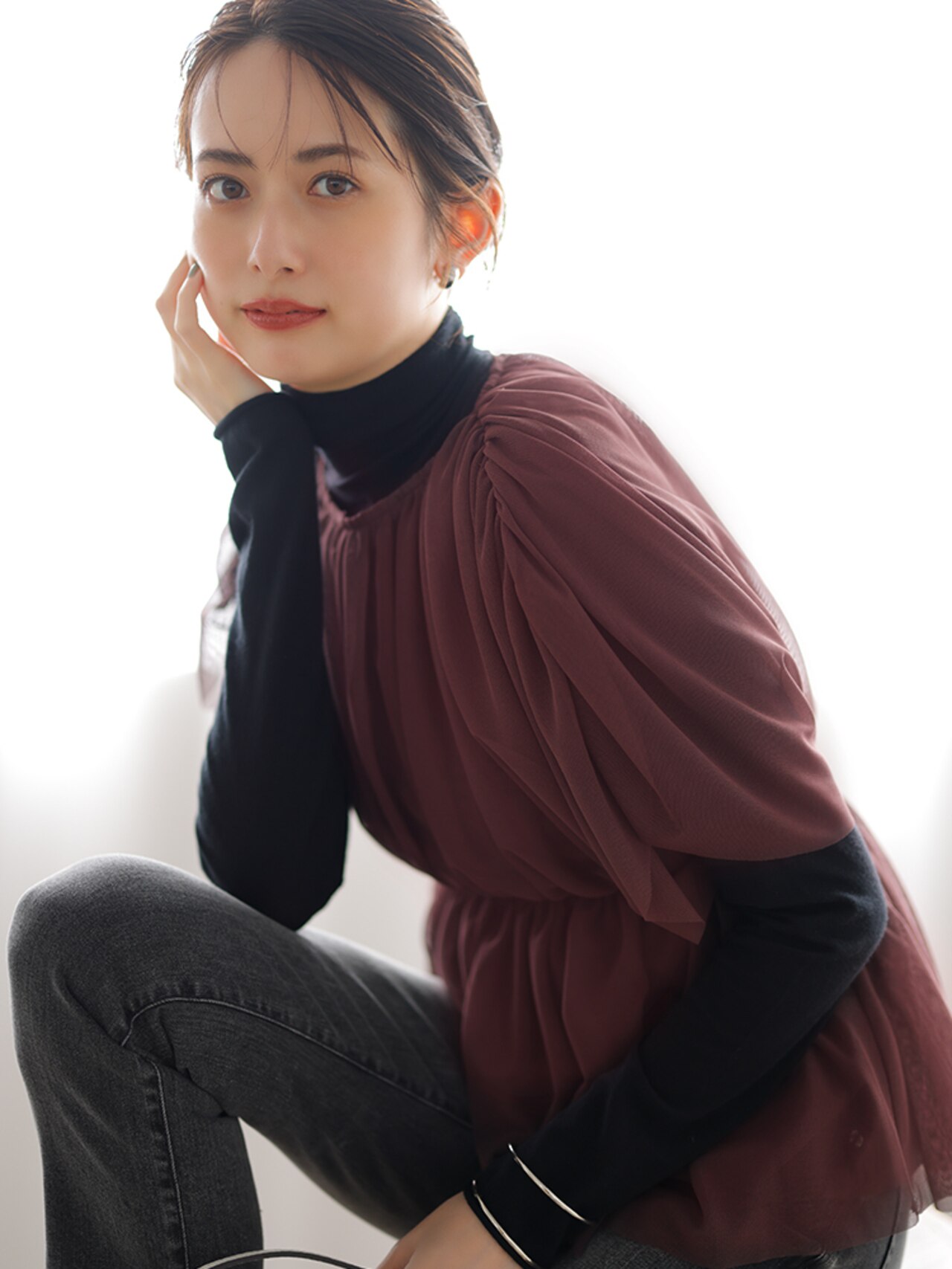 映えの代名詞ともいえるチュールトップス。繊細な重なりが奥行を生み、セットで着こなせばドレスさながらのドラマティックさ。タイトなインナーとボトムスを合わせれば、イメージはそのままに、秋気分が盛り上がるコーデの完成。