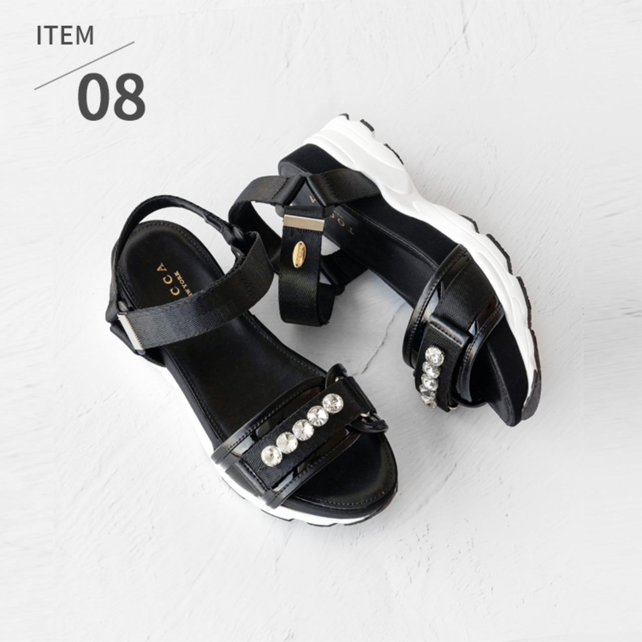 ■ボーイッシュなスタイルのアクセントになる、きらりとビジューが光るスポサン
