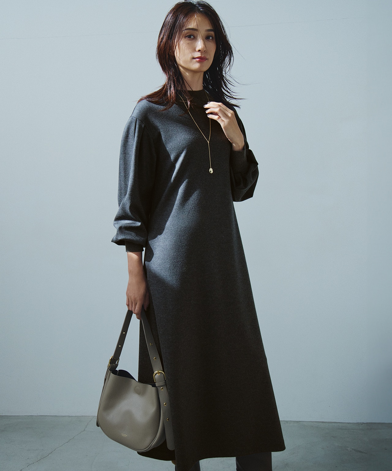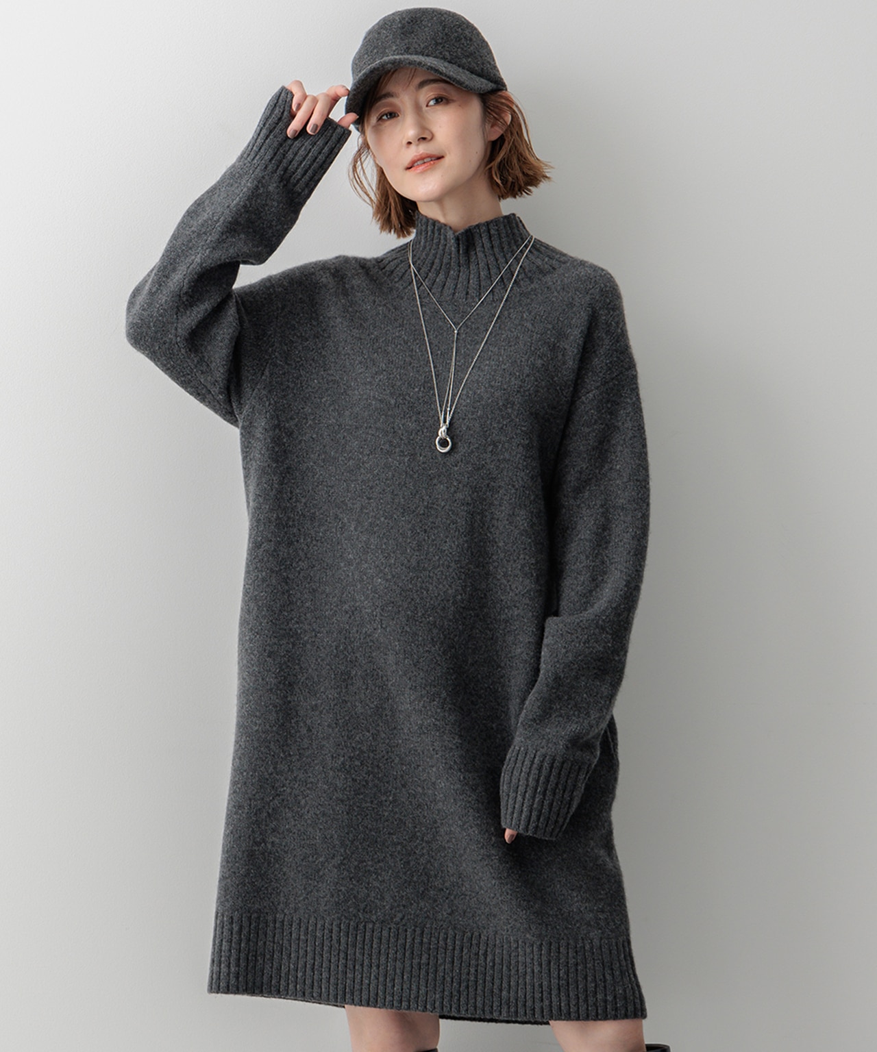 ボディラインを出さない縦落ちでスッキリ見せる【洗える】カシミヤブレンド ニットワンピース【洗える】カシミヤブレンド ニットワンピース23区 L¥30,800(税込)→¥15,400(税込) -