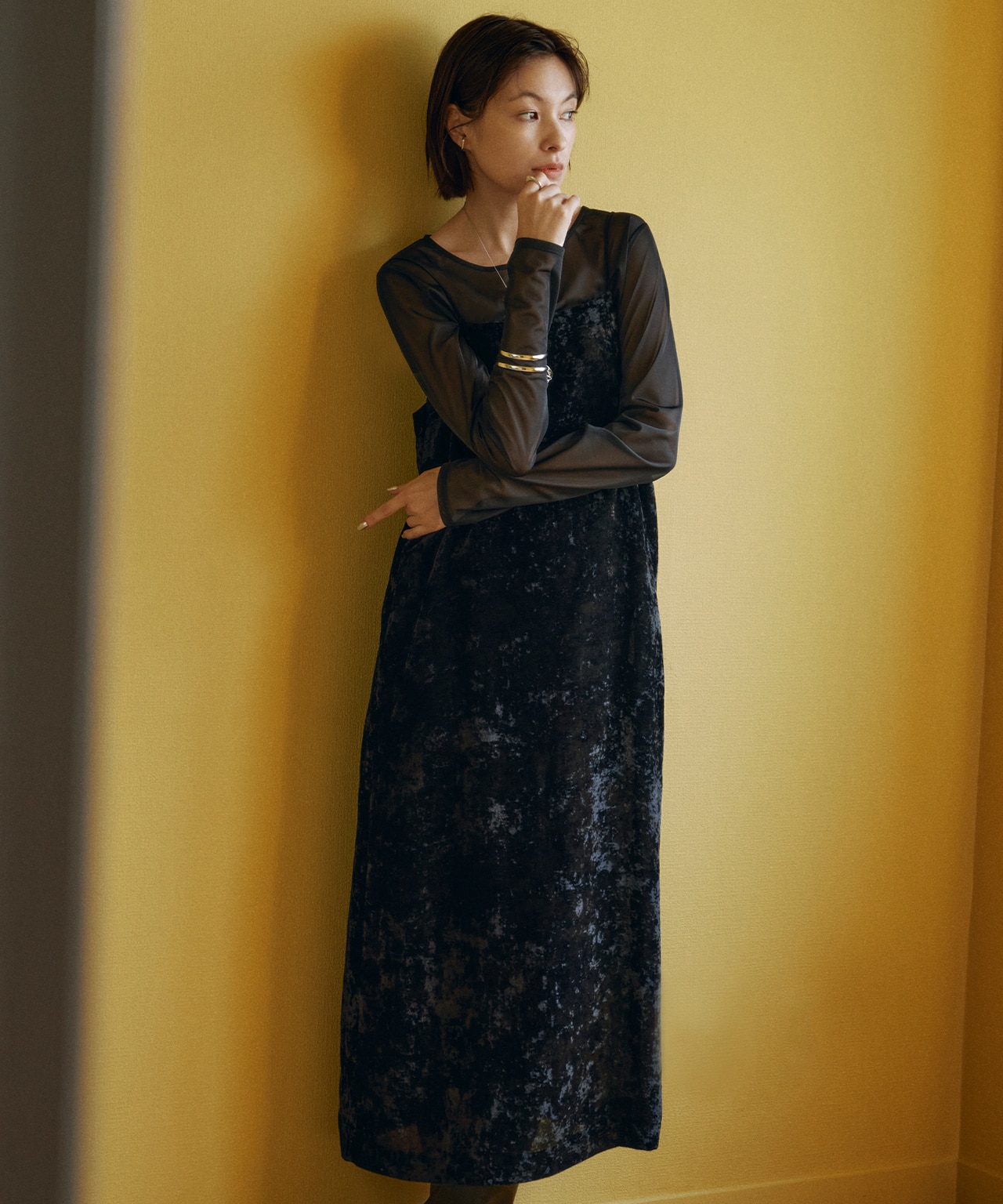程よい透けと光沢が体型カバーも担うキャミワンピ【洗える】 シアーベルベット キャミソールワンピース【洗える】 シアーベルベット キャミソールワンピースICB L¥31,020(税込)→¥15,510(税込)