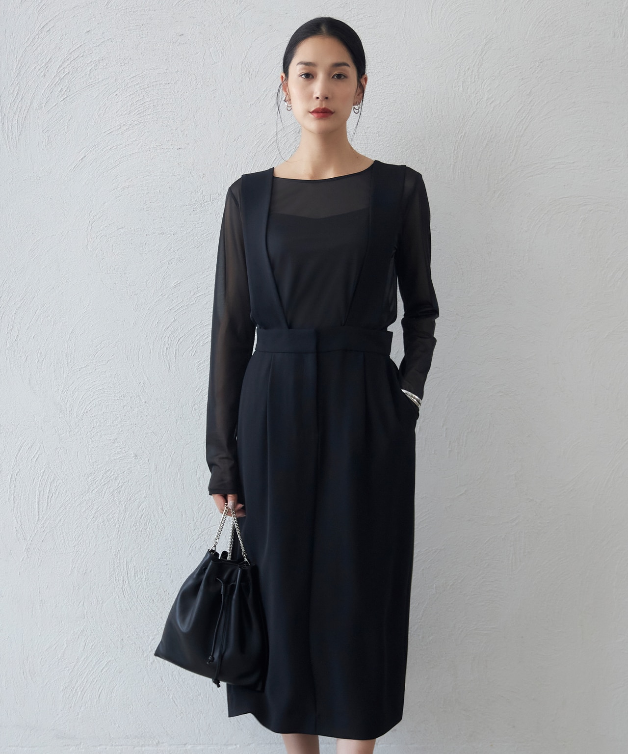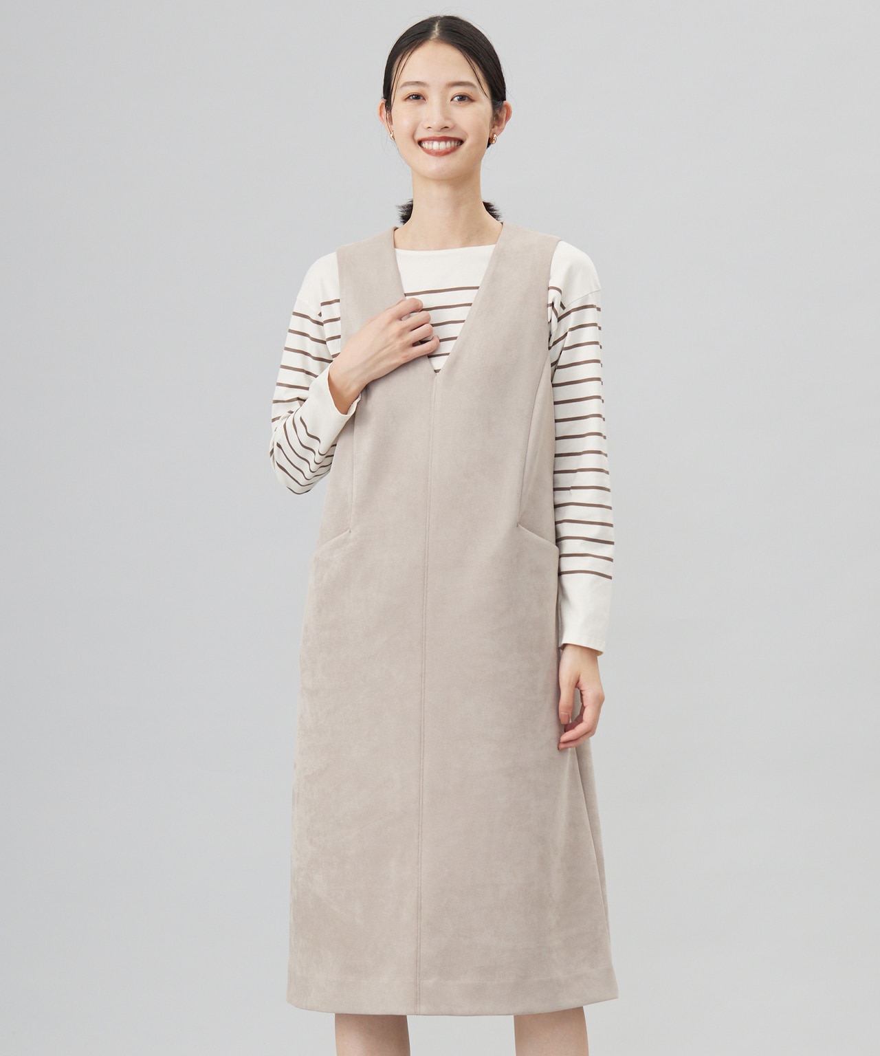 上半身スッキリ見せならコレ!深Vで顔まわりをシャープに【洗える】 ダブルフェイスクレープ ジャンパースカート【洗える】 ダブルフェイスクレープ ジャンパースカートICB L¥31,020(税込)