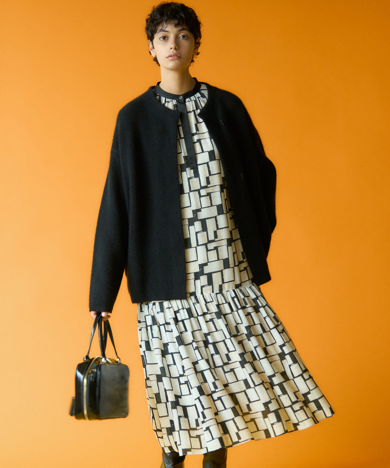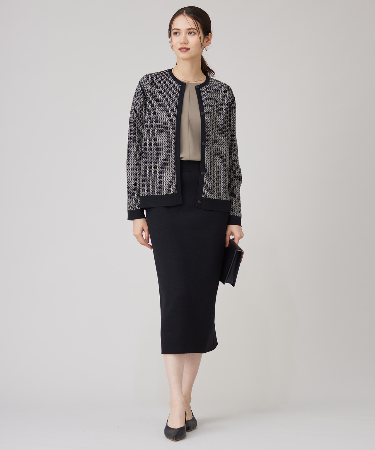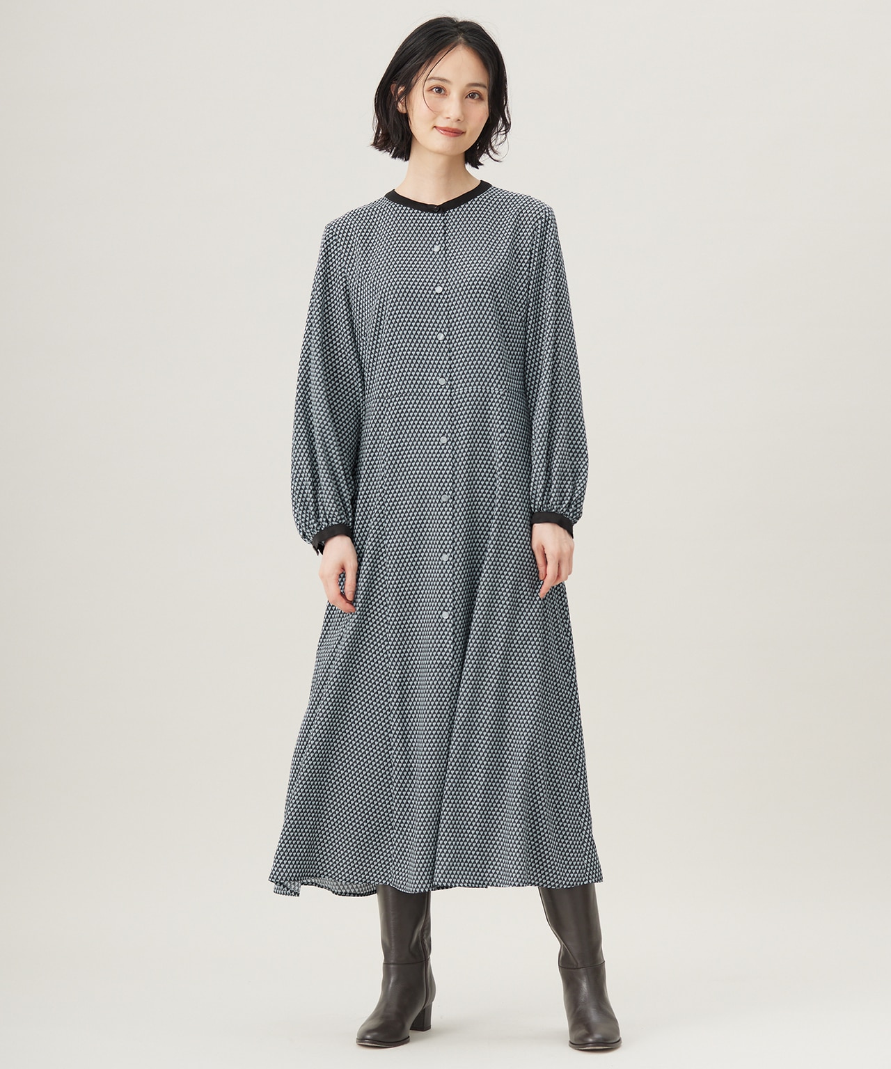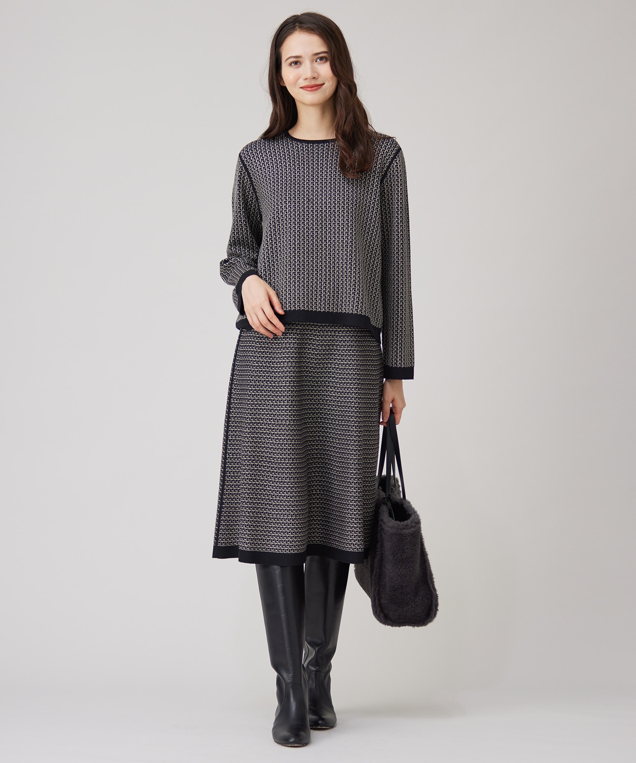 ボディラインを出さない厚みツイードで大人の品格【カタログ掲載・洗える】プリントジャガードストレッチ ワンピース【カタログ掲載・洗える】プリントジャガードストレッチ ワンピース自由区 L¥42,130(税込) -