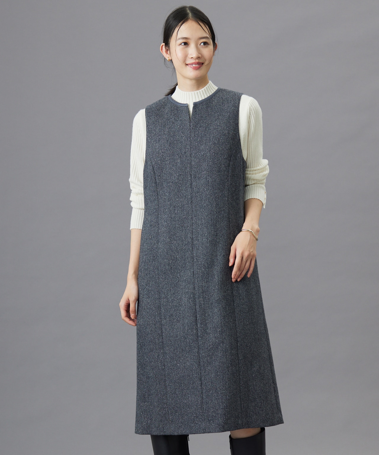 縦に長く見せて、体のラインをごまかす大人ツイード【先行予約】 スパングルツイード ジャンパースカート【先行予約】 スパングルツイード ジャンパースカートICB L¥47,080(税込)→¥28,160(税込) -