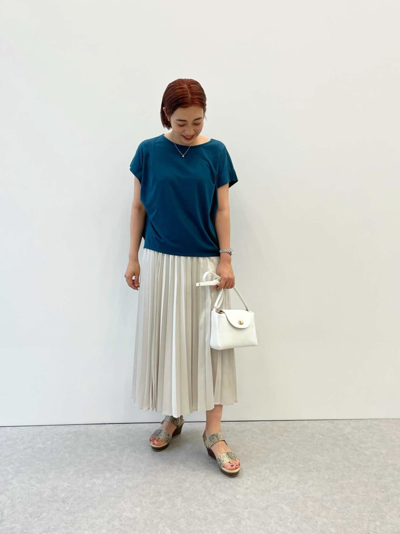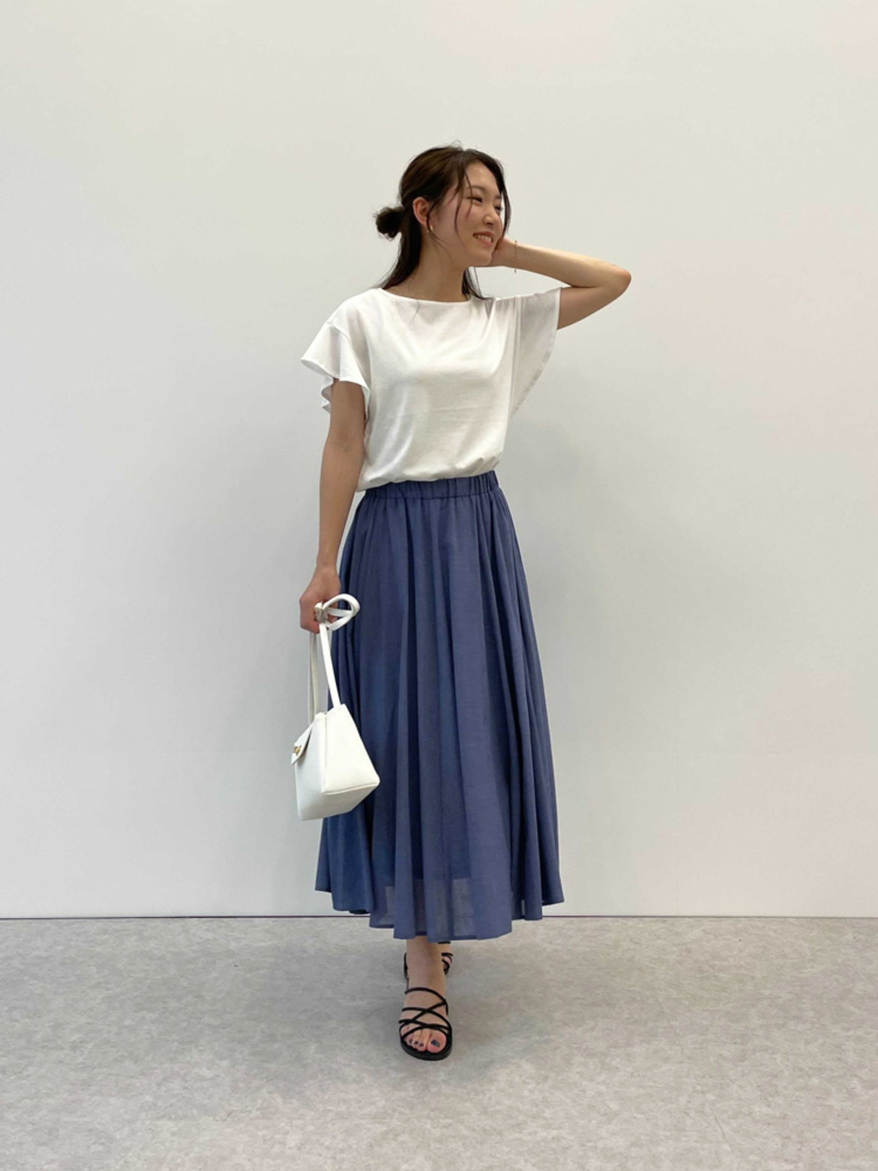 「ゆるすぎないのに、ボディラインを拾わず、着た瞬間“すっきり見える”と感動しました。いかにもTシャツ、な感じがしないきれいめ素材も好きです。スカートにウエストインも◎夏にマストなUVケアと接触冷感が付いているのも嬉しいです。」