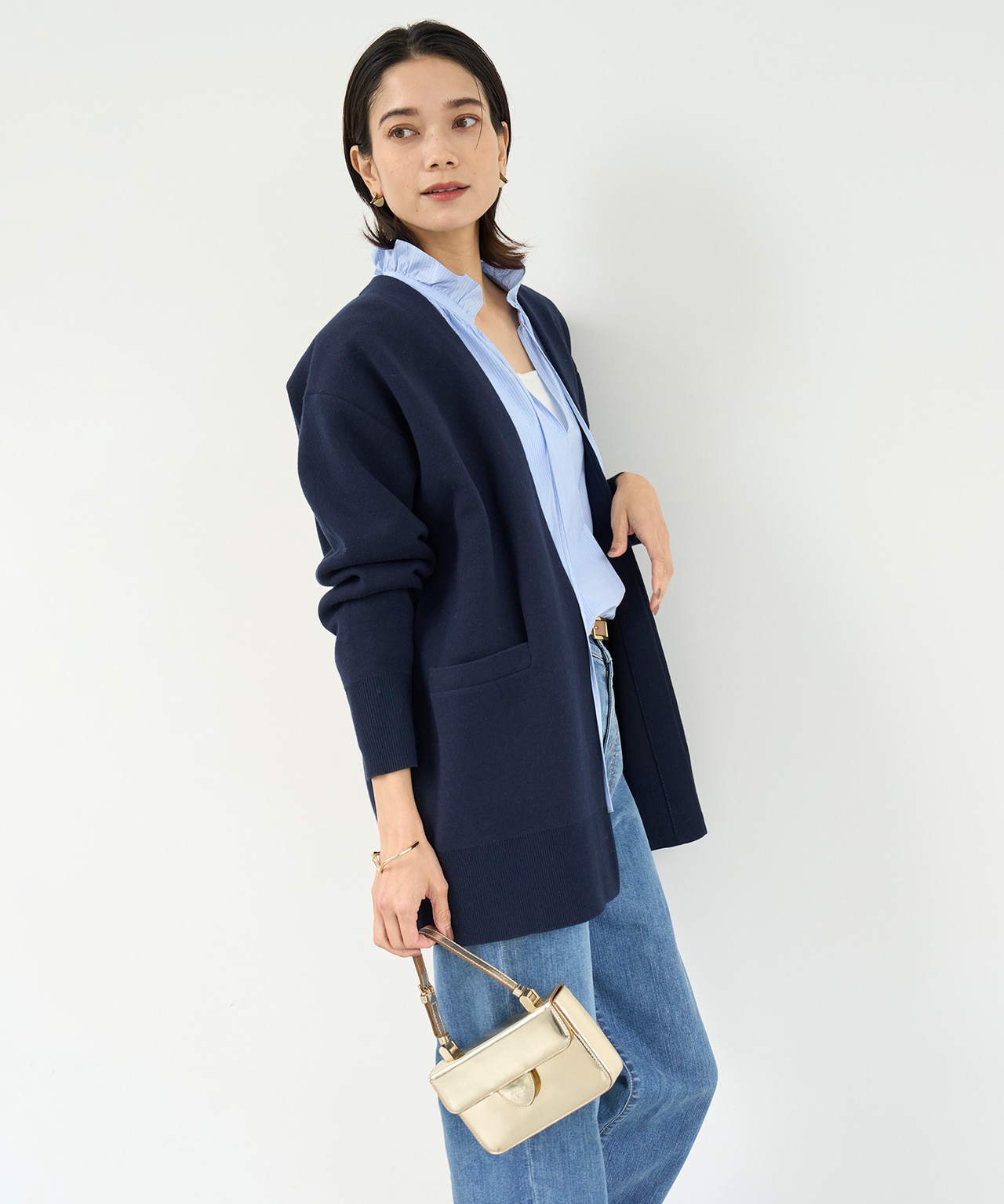 夏と違って、年の始まりできちんとする場もあるのが冬の帰省。カーディガンではちょっと頼りないときに、しっかり厚みのあるニットジャケットがちょうどいい。コンパクトなものを選べば、アウターの中に着込んでもOK。持っててよかったを感じるアイテムです。