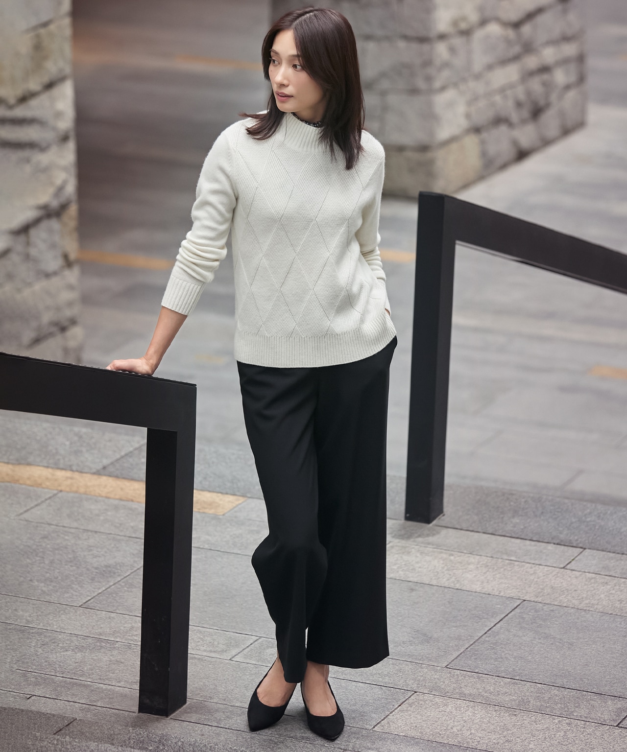 やっぱりあったかさはニットに頼りたい!ウールカシミヤの品質のいいニットが、このお値段で手に入る大人気ニット。程よくゆとりがあるからシャツやカットソーを重ねて着こんで、おしゃれと温かさをキープ。モノトーンボーダーなら合わせやすくて帰省中の着回しにも大活躍。