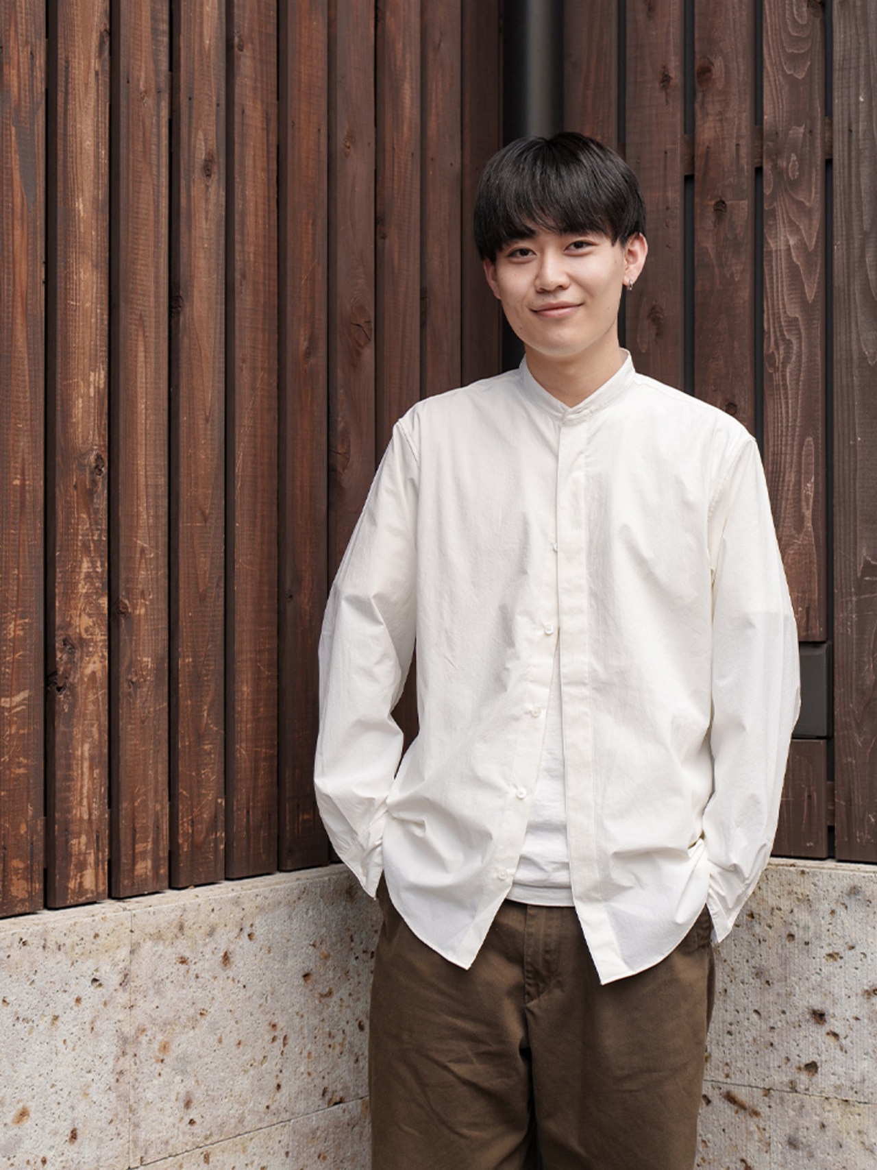 気楽に着られる白シャツを試した人気カフェのバリスタたち