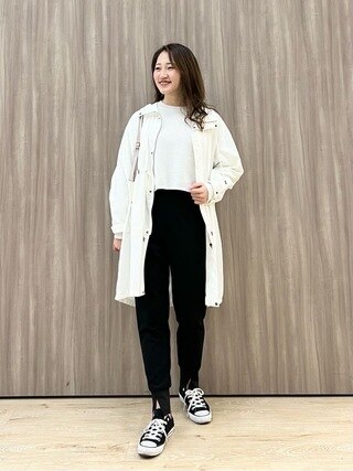 ウエストのドロスト位置が高めなので、ドロストを絞ると、より女性らしいシルエットで着ていただけます。