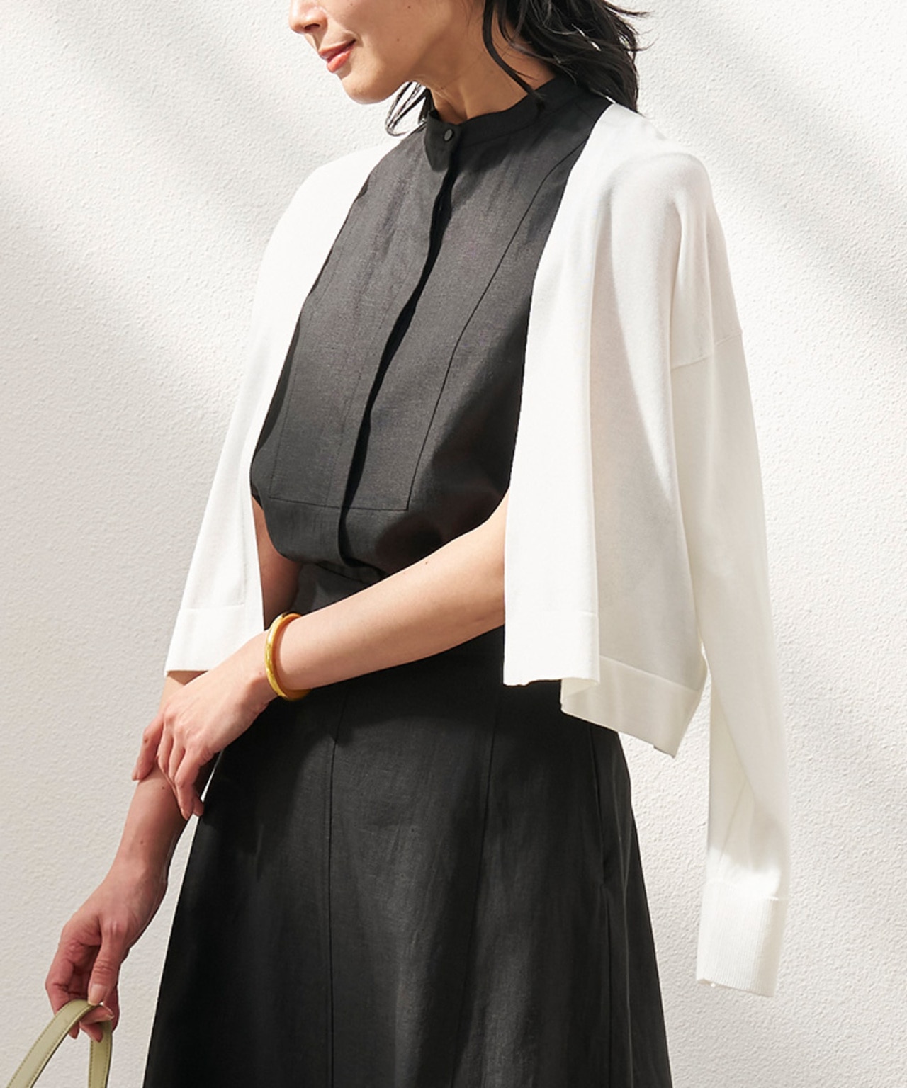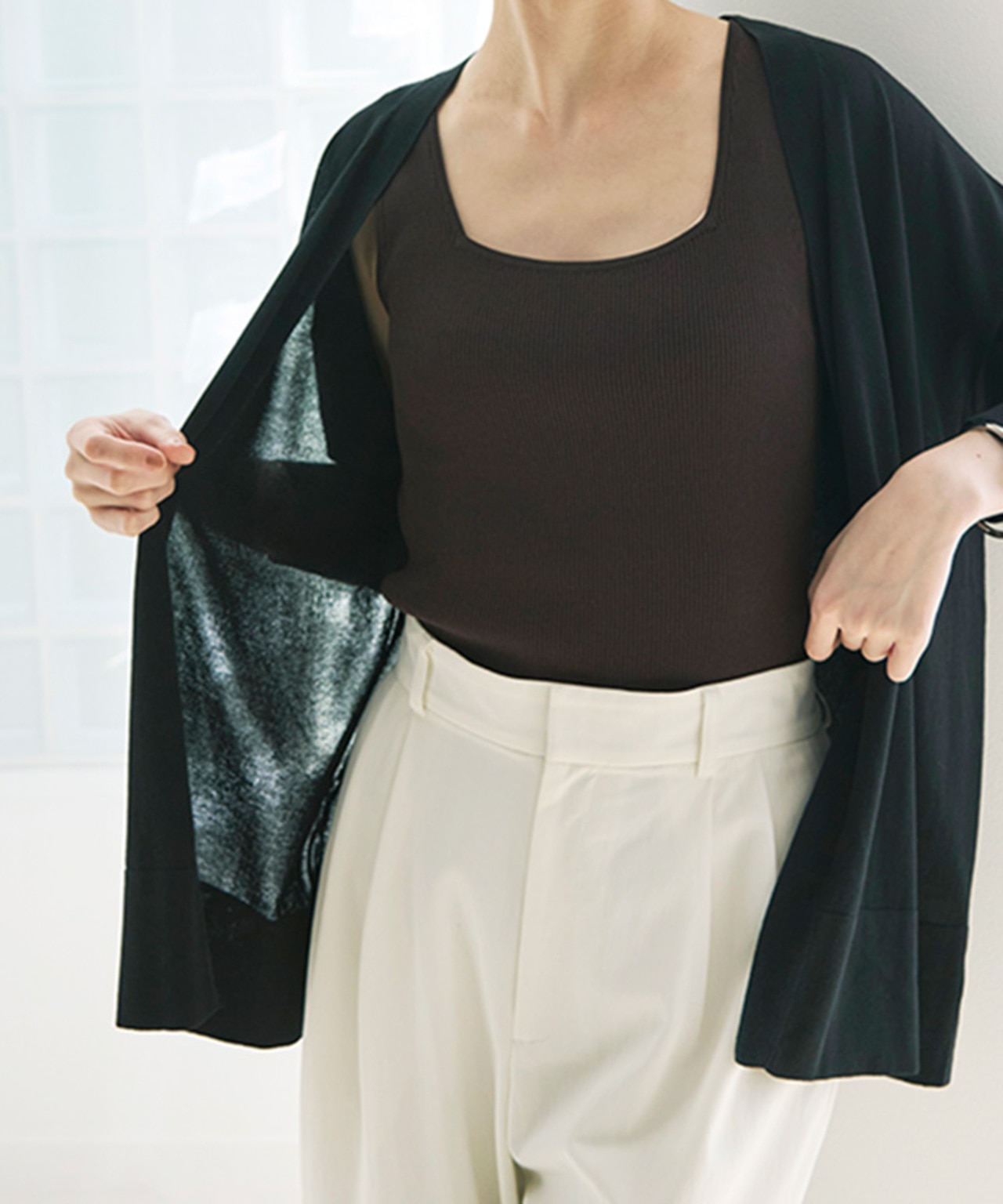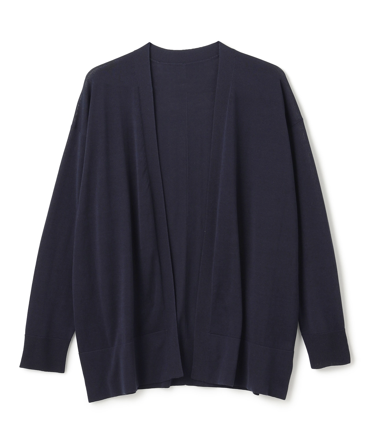 程よい光沢があり、サラサラとした肌触りで清涼感のあるシアーカーディガン。