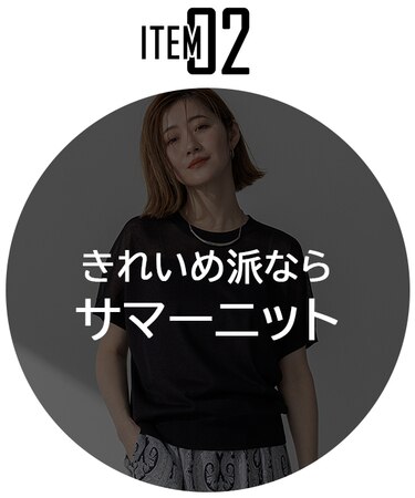 シンプルなデザインのドルマンスリーブニット。胸下は透け感のない編地なので、シアーアイテムを着てみたいけど難しそう、という方にも挑戦しやすいデザイン。通気性・吸湿性に優れた、夏も快適に過ごせるニットです。