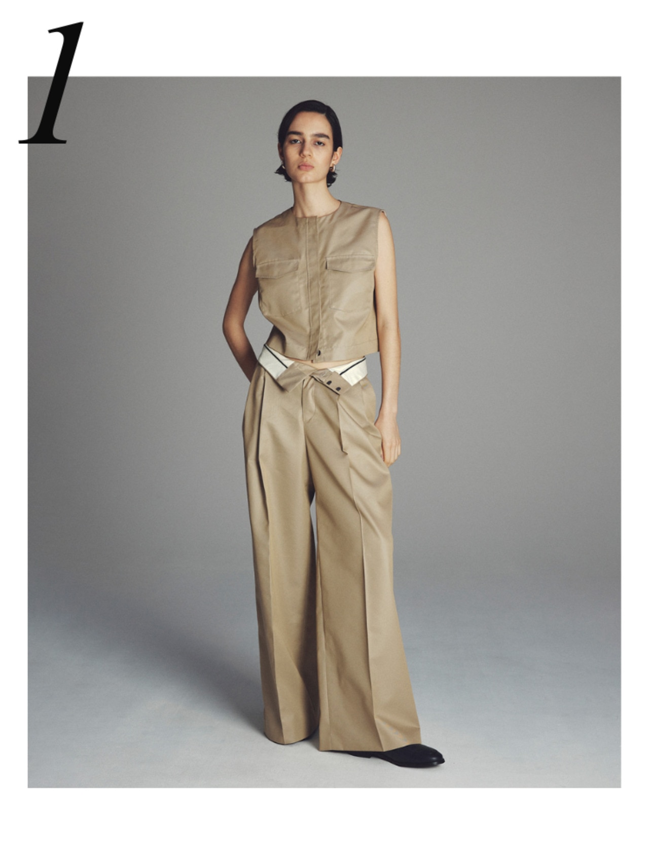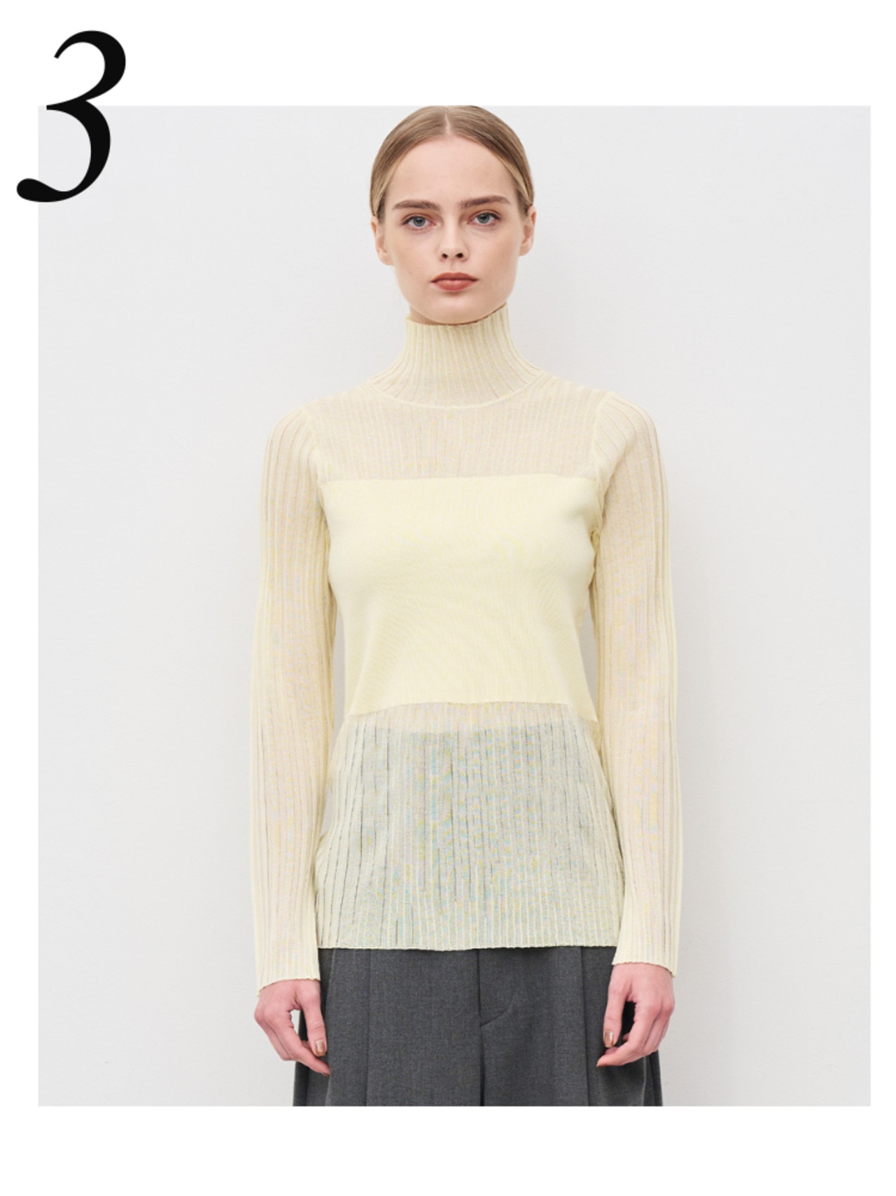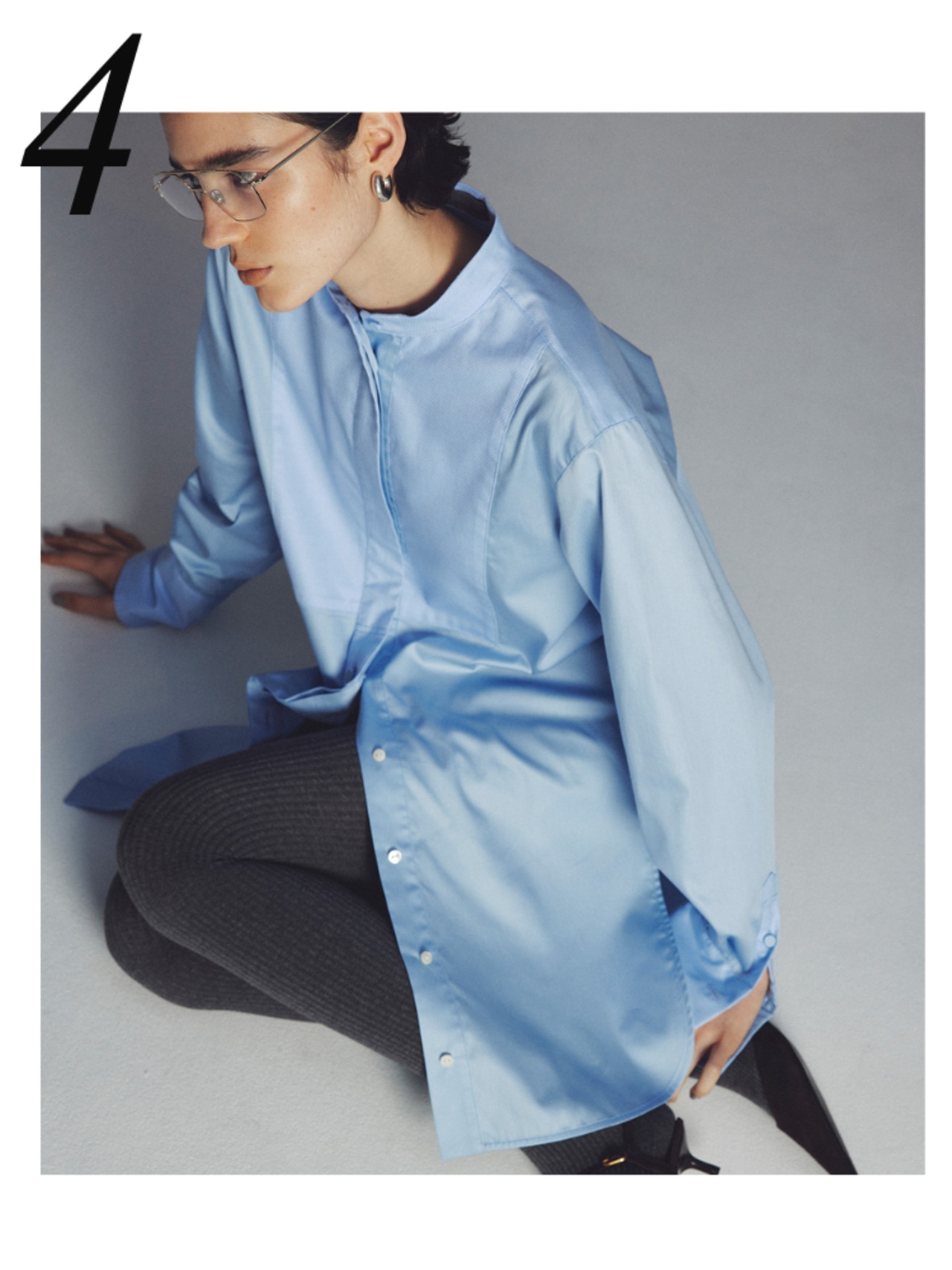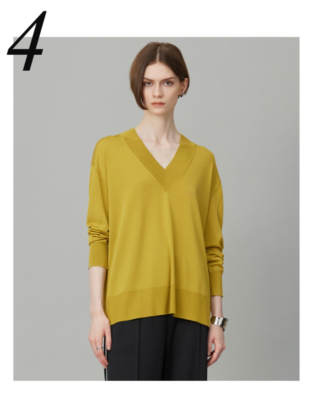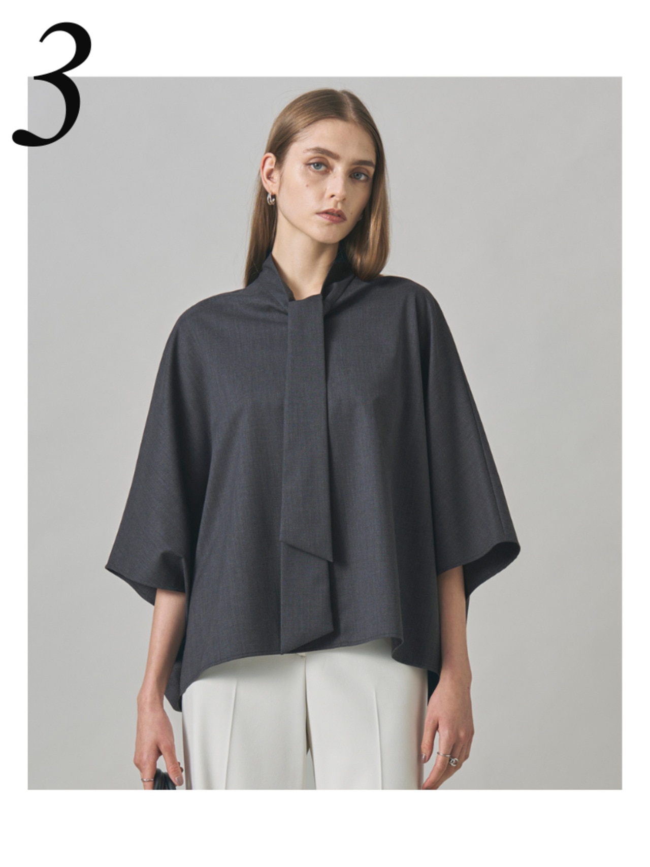 毎日の着こなしに迷う秋こそ、素材と柄で悩みを解消!透け感のある長袖トップスとチェック柄セットアップが、秋の強い味方に。(企画担当・160cm)