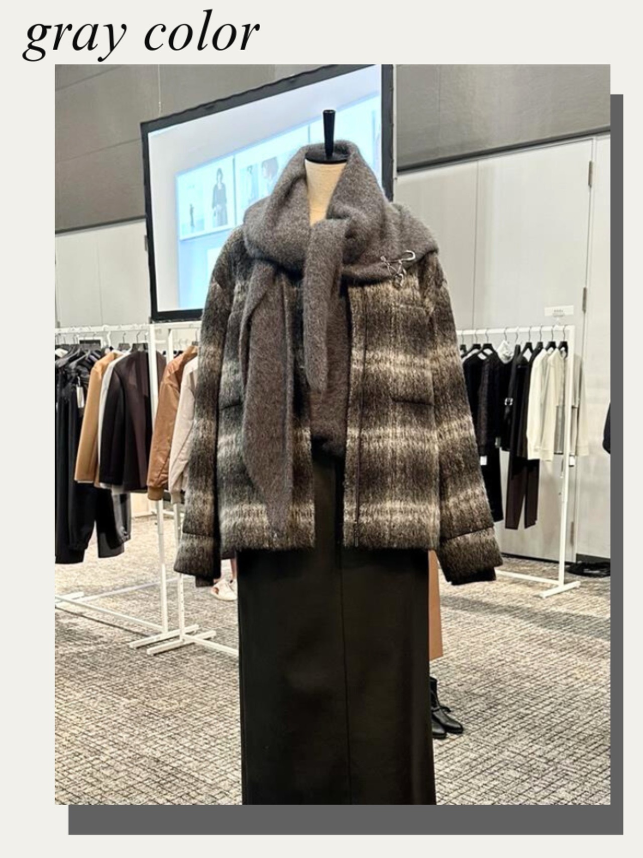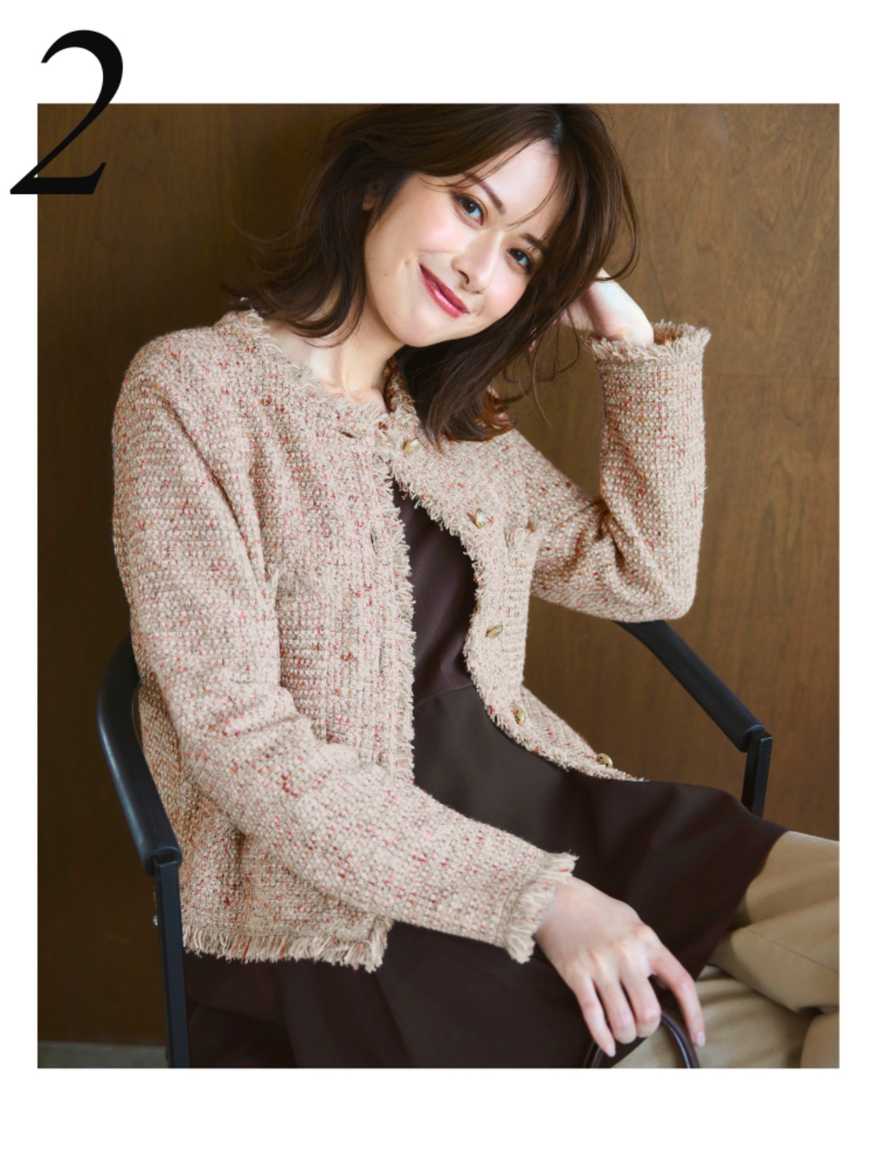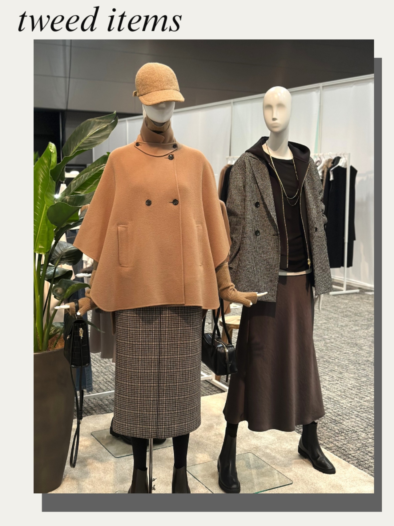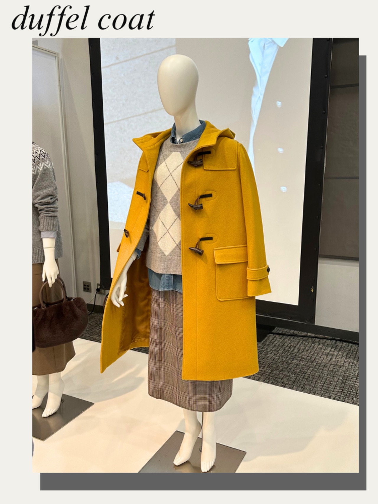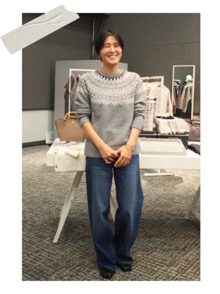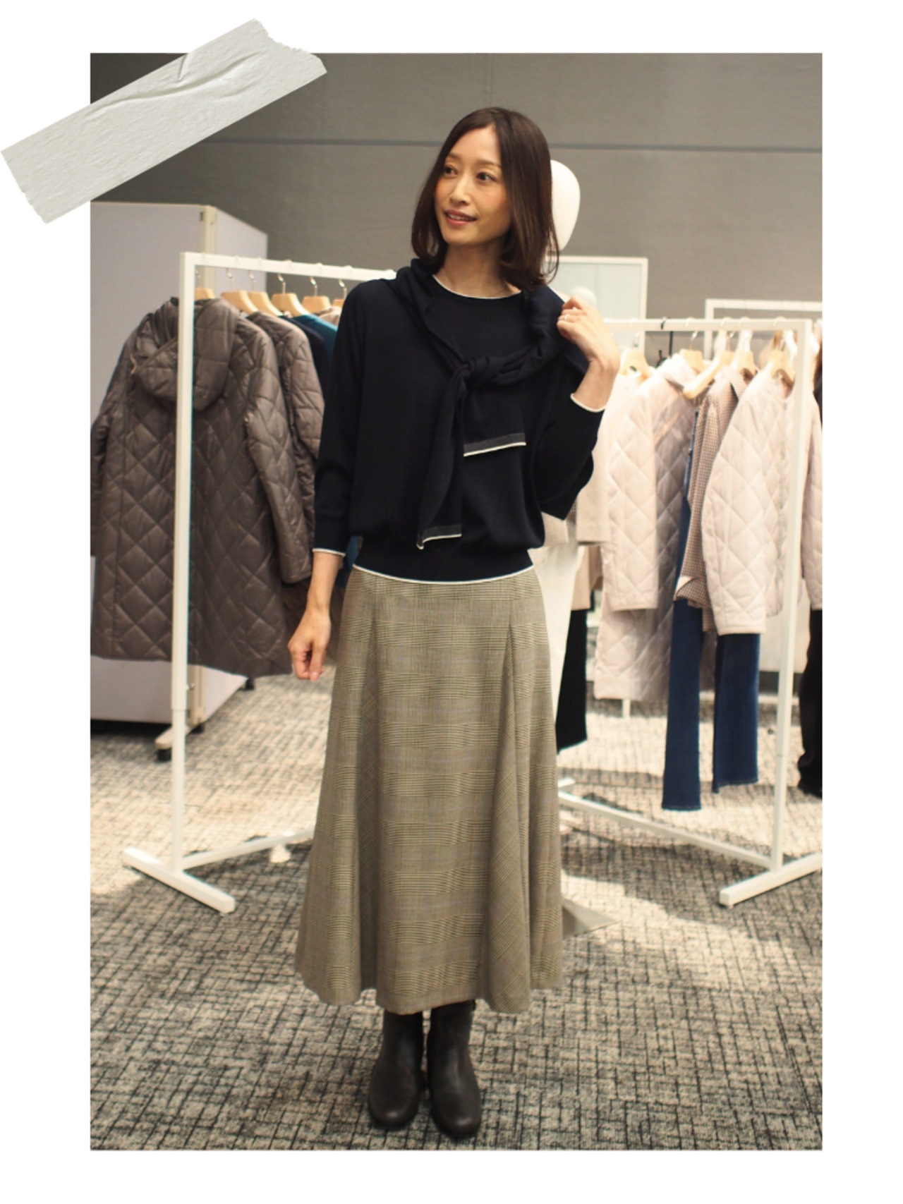 同素材のニットとカーディガンに、チェック柄スカートを合わせて、クラシックで上品なトラッドスタイルに仕上げました。(DB担当・167cm)