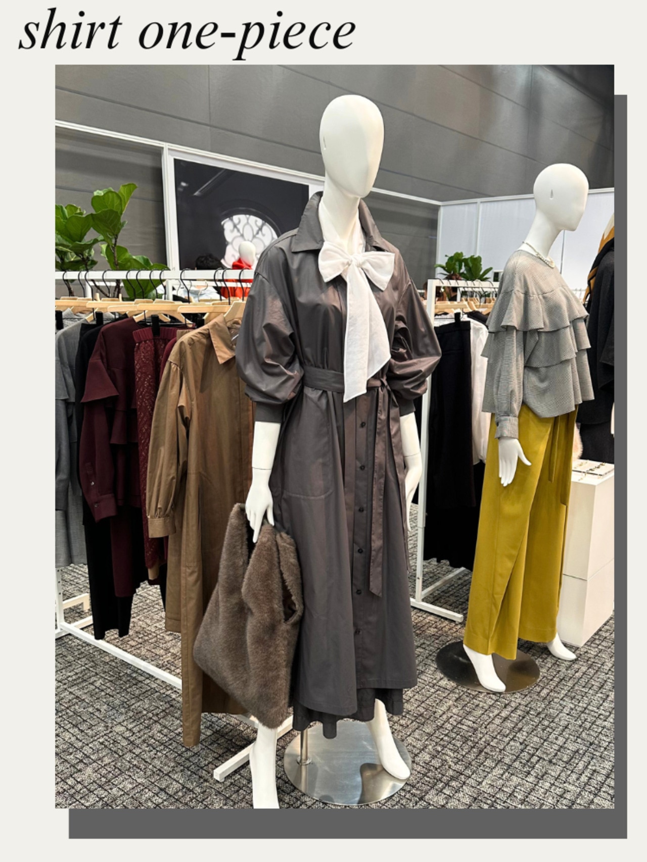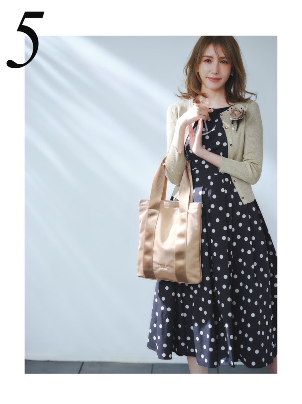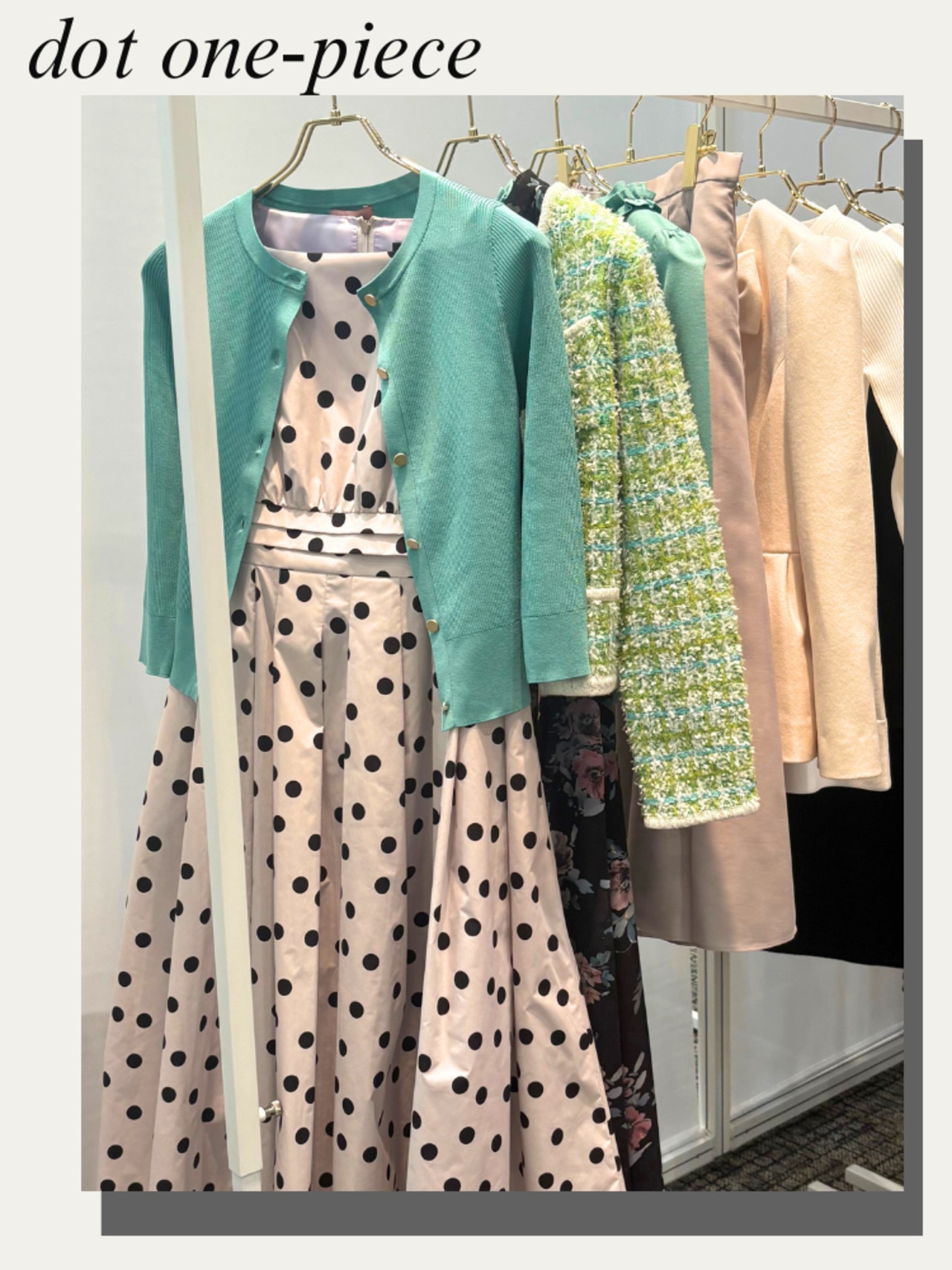 分量感のあるドット柄ワンピースで、秋らしいクラシックなムードを楽しみながら、季節の変わり目にも映えるスタイルに!(EC担当・153cm)