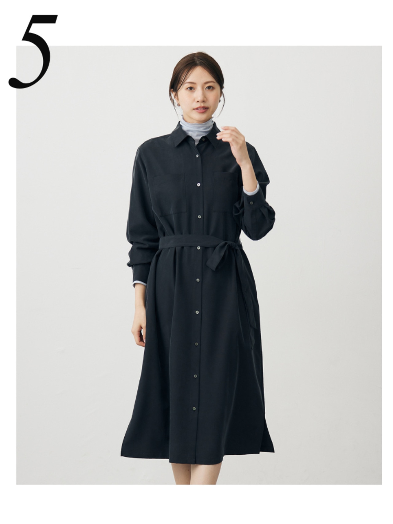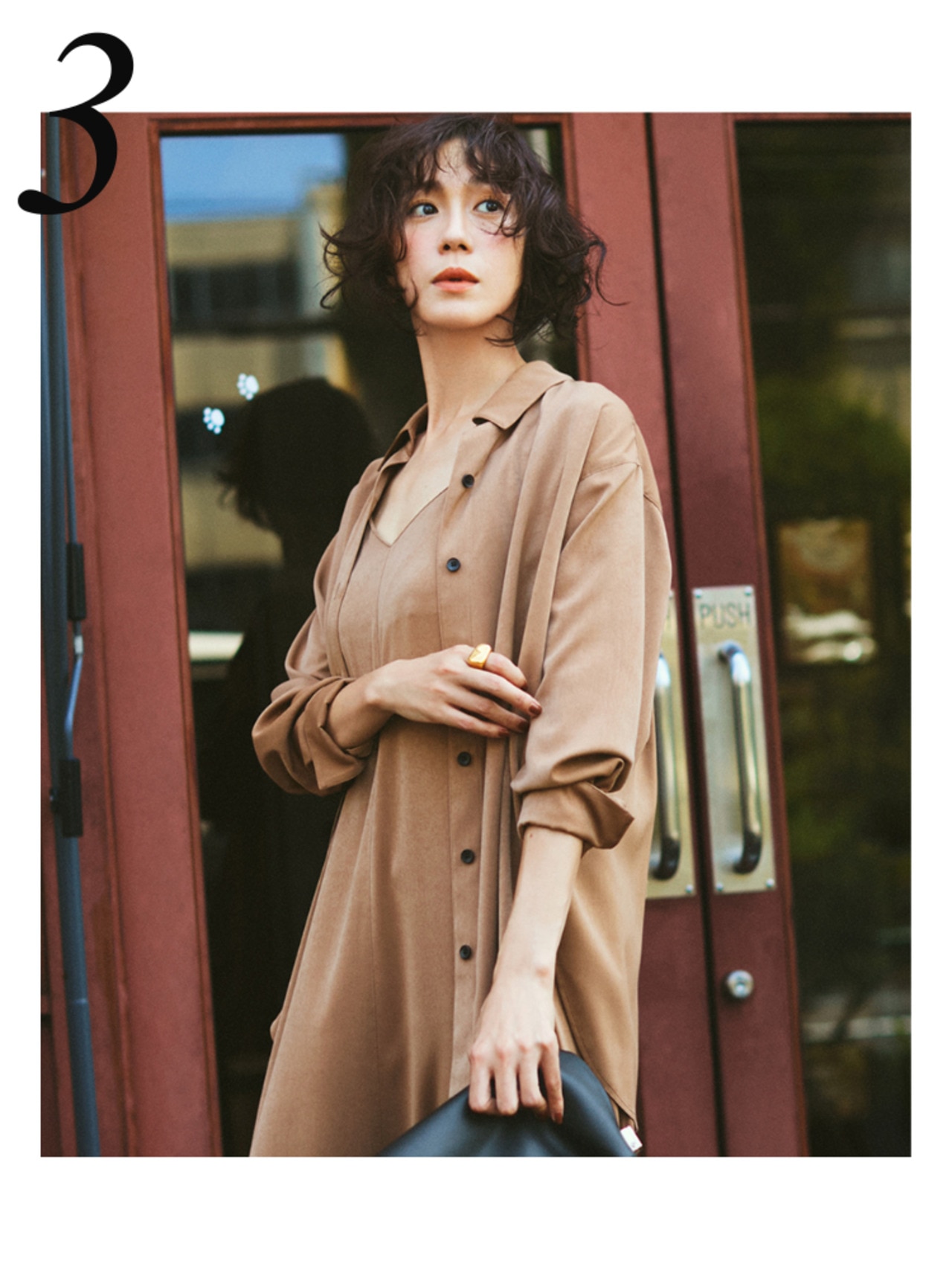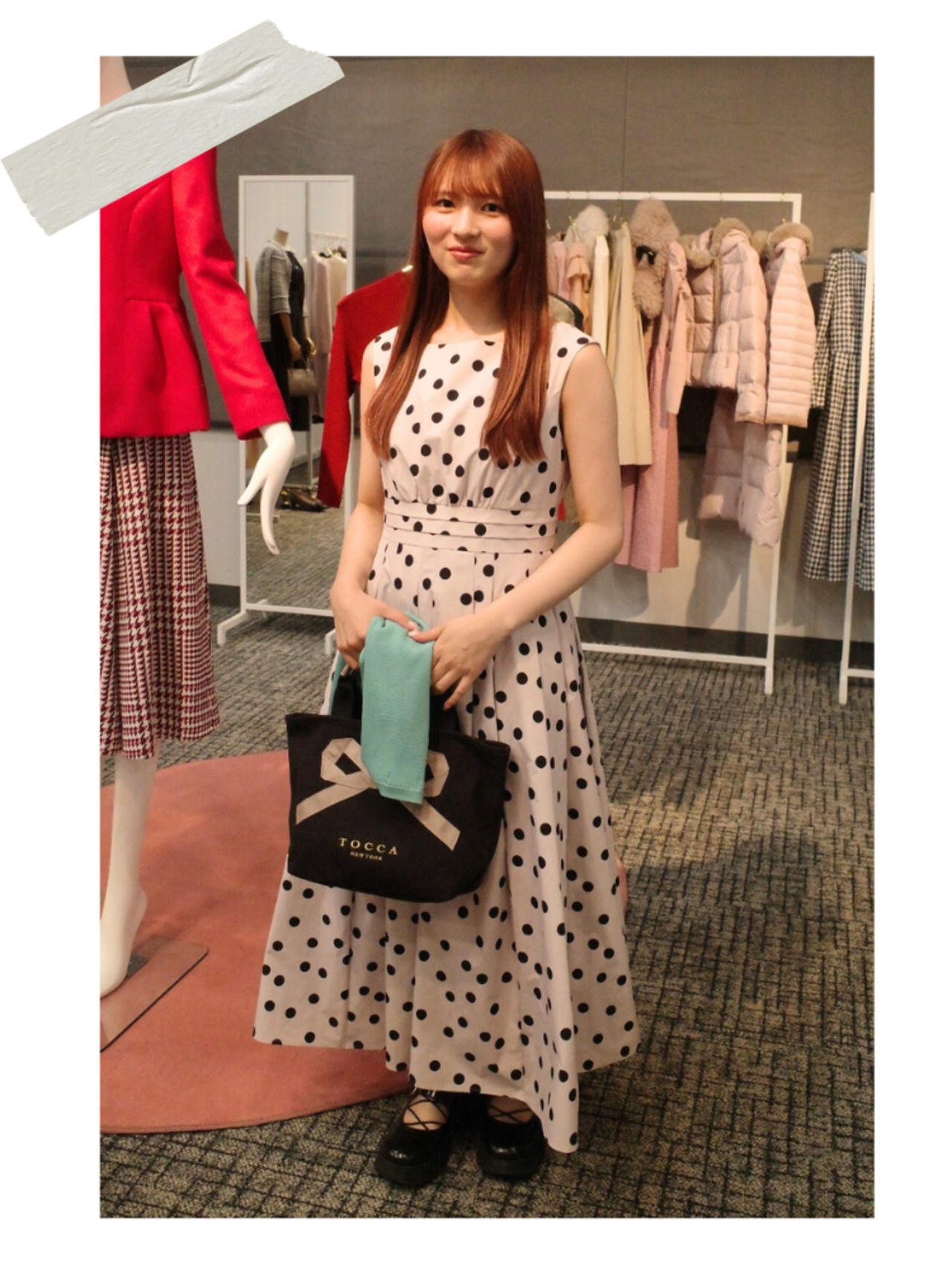 分量感のあるドット柄ワンピースで、秋らしいクラシックなムードを楽しみながら、季節の変わり目にも映えるスタイルに!(EC担当・153cm)