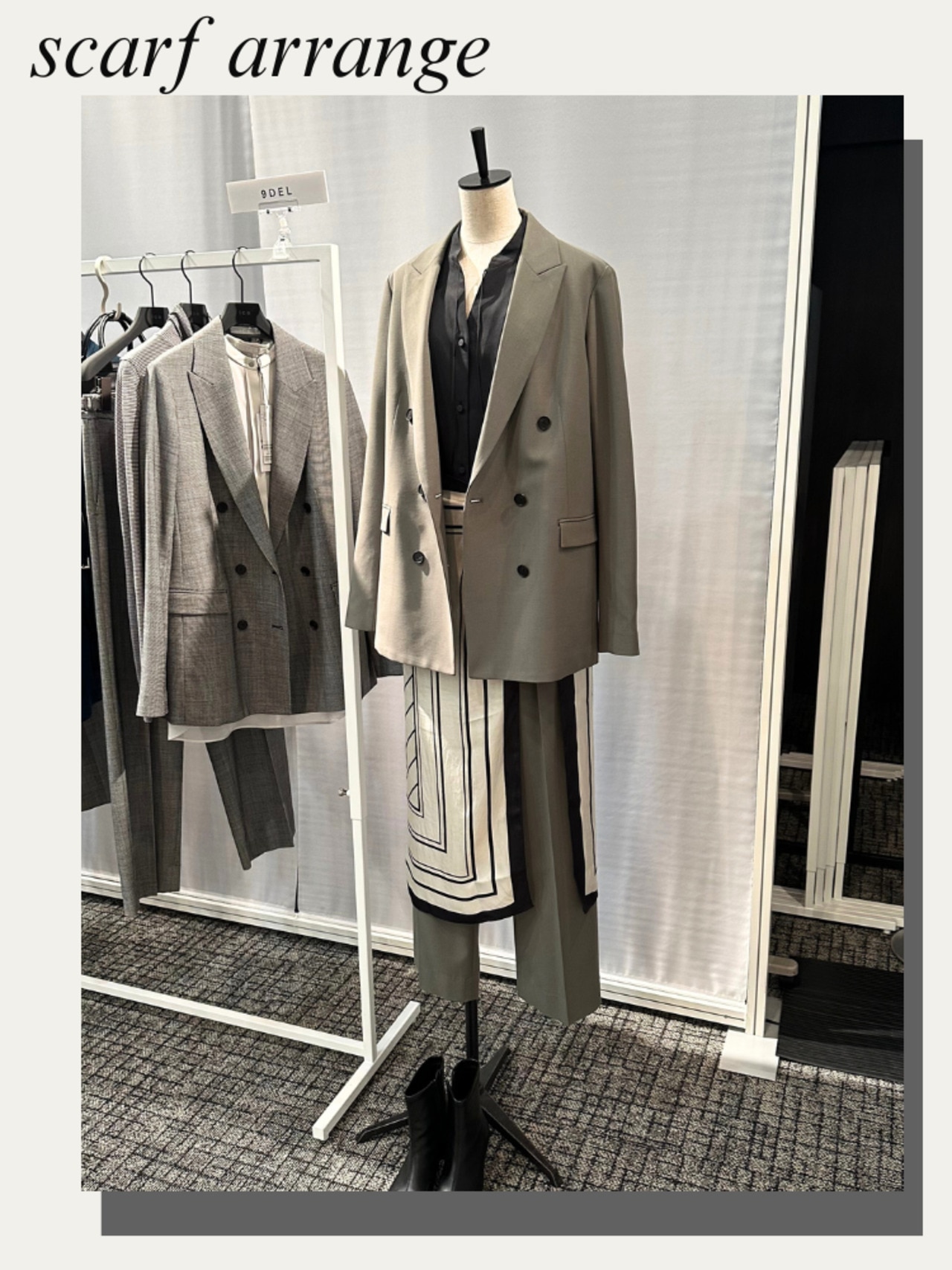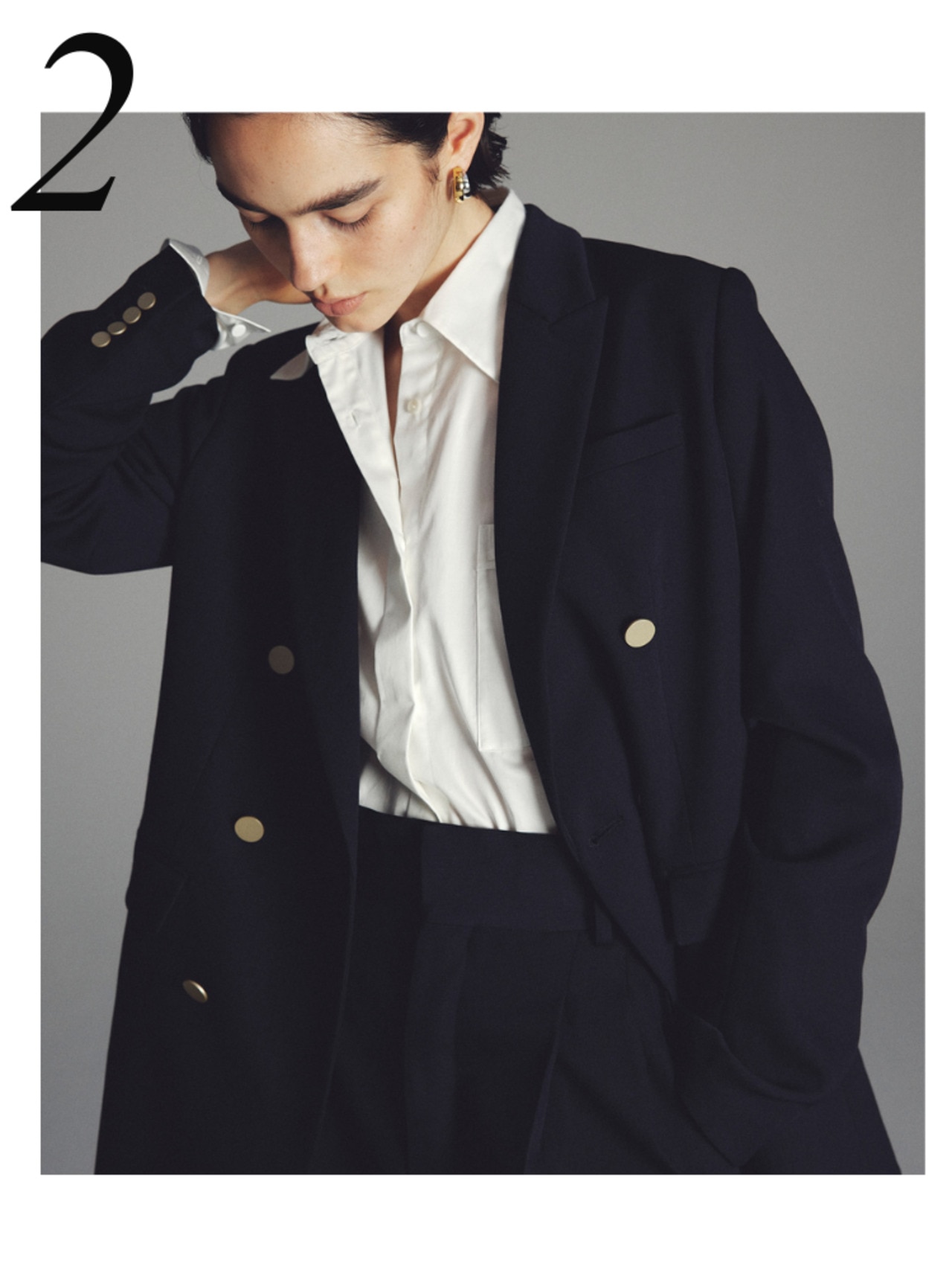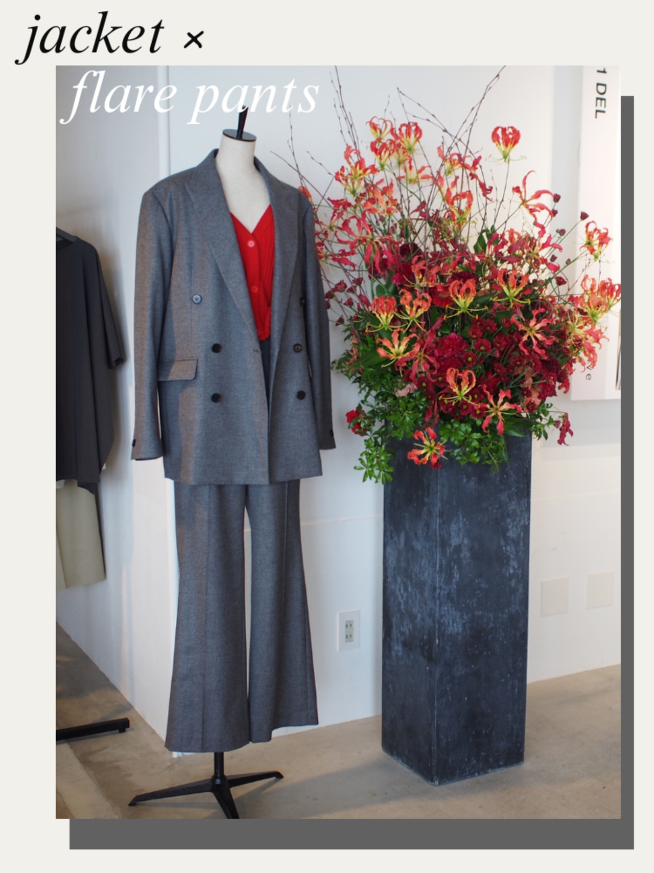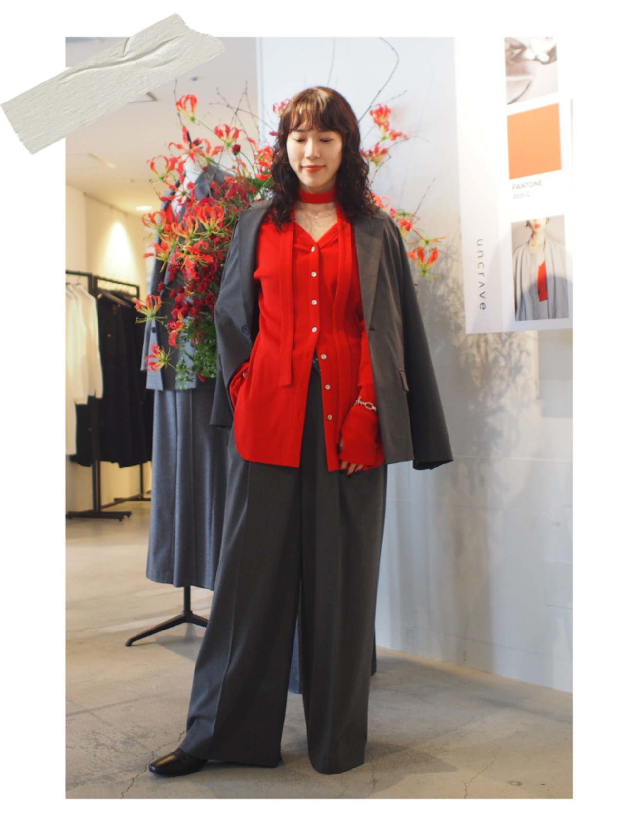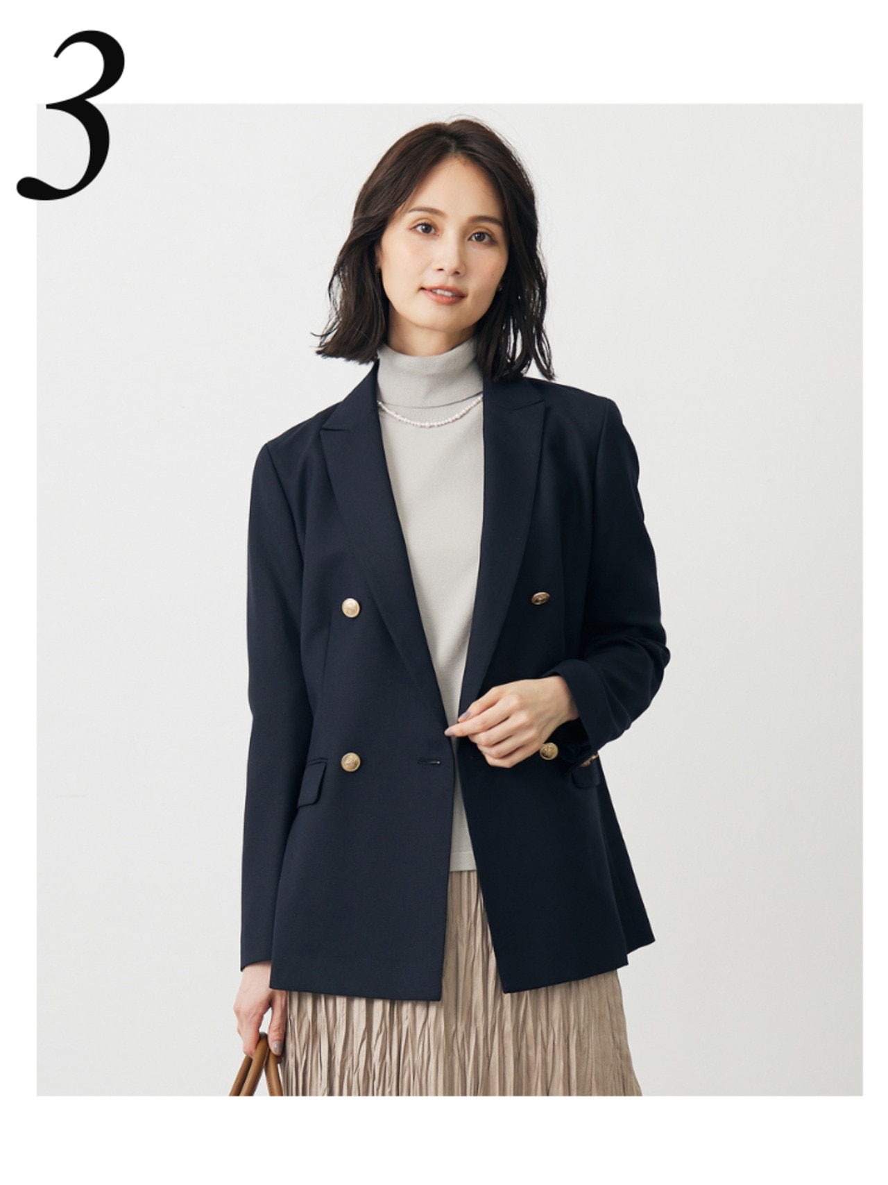 正統派なジャケットは、キレイめにもカジュアルにも活躍。程よい外しを意識してワイドチノを合わせると、着こなしの幅が広がります。(販促担当・154cm)